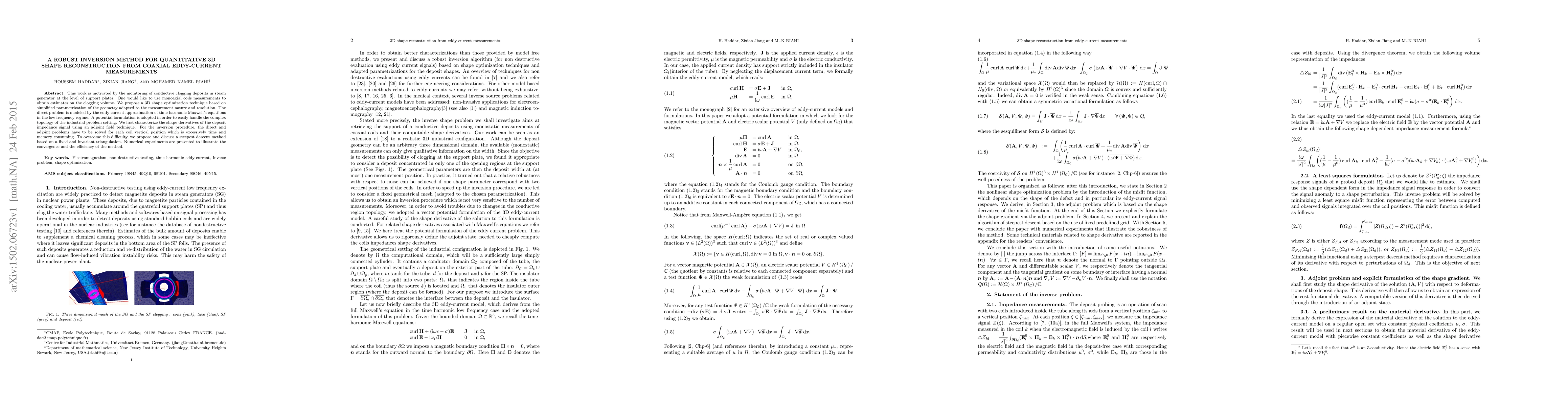 Researchers developed a method to reconstruct 3D shapes from coaxial eddy-current measurements, enabling monitoring of conductive clogging deposits in steam generators with improved accuracy and efficiency.