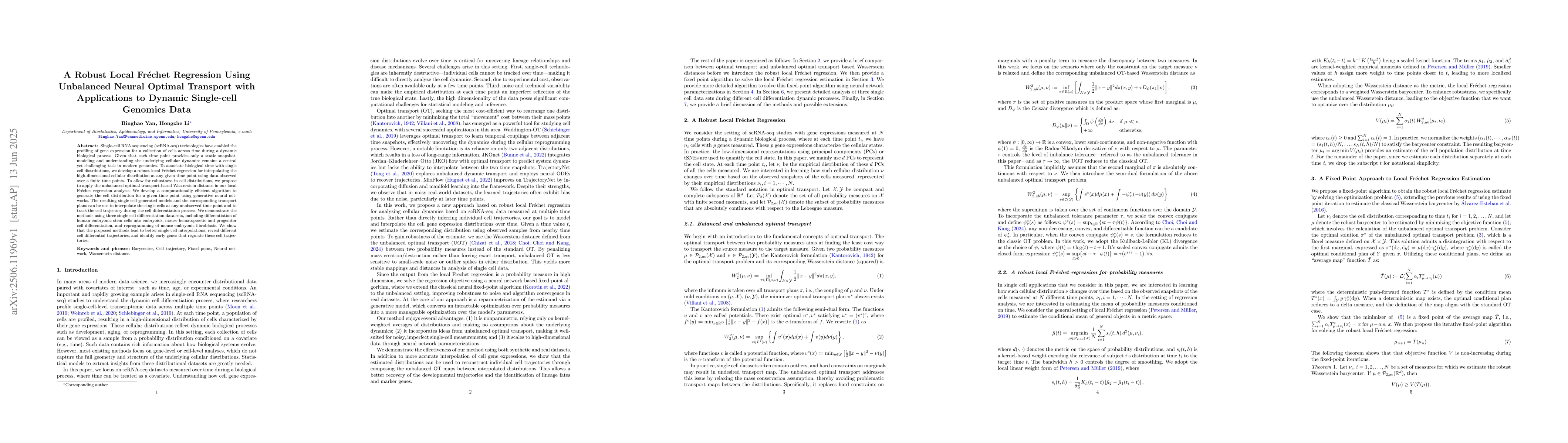 Single-cell RNA sequencing (scRNA-seq) technologies have enabled the profiling of gene expression for a collection of cells across time during a dynamic biological process. Given that each time point provides only a static snapshot, modeling and understanding the underlying cellular dynamics remains a central yet challenging task in modern genomics. To associate biological time with single cell distributions, we develop a robust local Fr\'echet regression for interpolating the high-dimensional cellular distribution at any given time point using data observed over a finite time points. To allow for robustness in cell distributions, we propose to apply the unbalanced optimal transport-based Wasserstein distance in our local Fr\'echet regression analysis. We develop a computationally efficient algorithm to generate the cell distribution for a given time point using generative neural networks. The resulting single cell generated models and the corresponding transport plans can be use to interpolate the single cells at any unobserved time point and to track the cell trajectory during the cell differentiation process. We demonstrate the methods using three single cell differentiation data sets, including differentiation of human embryonic stem cells into embryoids, mouse hematopoietic and progenitor cell differentiation, and reprogramming of mouse embryonic fibroblasts. We show that the proposed methods lead to better single cell interpolations, reveal different cell differential trajectories, and identify early genes that regulate these cell trajectories.