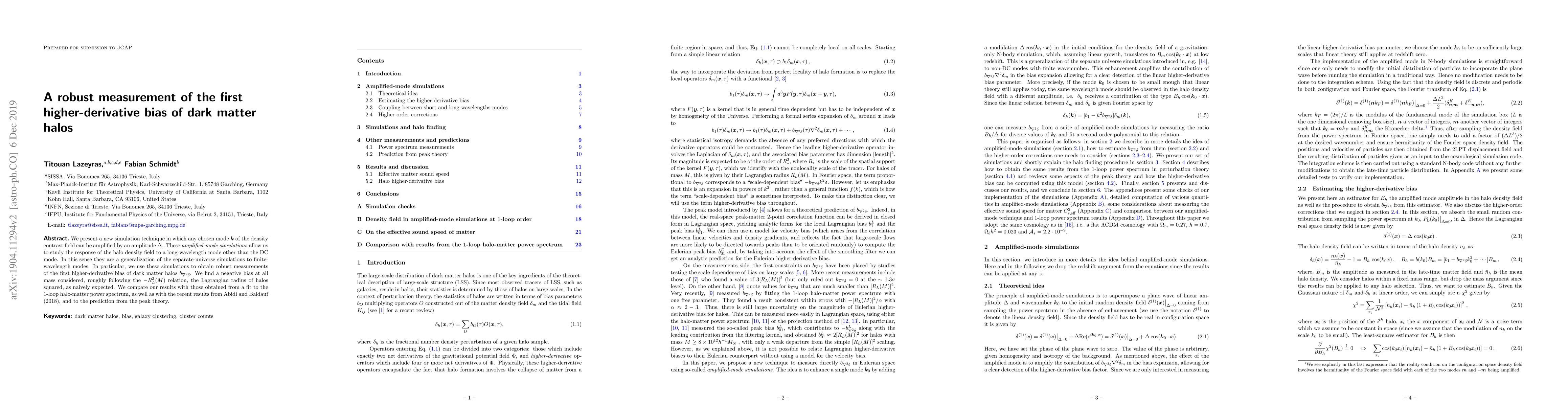 We present a new simulation technique in which any chosen mode $\mathbf{k}$ of the density contrast field can be amplified by an amplitude $\Delta$. These amplified-mode simulations allow us to study the response of the halo density field to a long-wavelength mode other than the DC mode. In this sense they are a generalization of the separate-universe simulations to finite-wavelength modes. In particular, we use these simulations to obtain robust measurements of the first higher-derivative bias of dark matter halos $b_{\nabla^2 \delta}$. We find a negative bias at all mass considered, roughly following the $-R_L^2(M)$ relation, the Lagrangian radius of halos squared, as naively expected. We compare our results with those obtained from a fit to the 1-loop halo-matter power spectrum, as well as with the recent results from Abidi and Baldauf (2018), and to the prediction from the peak theory.