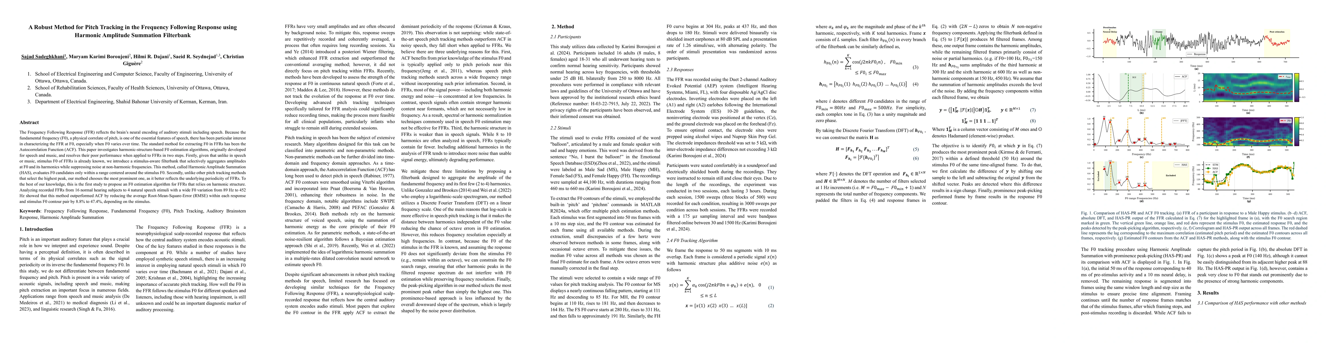 The Frequency Following Response (FFR) reflects the brain's neural encoding of auditory stimuli including speech. Because the fundamental frequency (F0), a physical correlate of pitch, is one of the essential features of speech, there has been particular interest in characterizing the FFR at F0, especially when F0 varies over time. The standard method for extracting F0 in FFRs has been the Autocorrelation Function (ACF). This paper investigates harmonic-structure-based F0 estimation algorithms, originally developed for speech and music, and resolves their poor performance when applied to FFRs in two steps. Firstly, given that unlike in speech or music, stimulus F0 of FFRs is already known, we introduce a stimulus-aware filterbank that selectively aggregates amplitudes at F0 and its harmonics while suppressing noise at non-harmonic frequencies. This method, called Harmonic Amplitude Summation (HAS), evaluates F0 candidates only within a range centered around the stimulus F0. Secondly, unlike other pitch tracking methods that select the highest peak, our method chooses the most prominent one, as it better reflects the underlying periodicity of FFRs. To the best of our knowledge, this is the first study to propose an F0 estimation algorithm for FFRs that relies on harmonic structure. Analyzing recorded FFRs from 16 normal hearing subjects to 4 natural speech stimuli with a wide F0 variation from 89 Hz to 452 Hz showed that this method outperformed ACF by reducing the average Root-Mean-Square-Error (RMSE) within each response and stimulus F0 contour pair by 8.8% to 47.4%, depending on the stimulus.