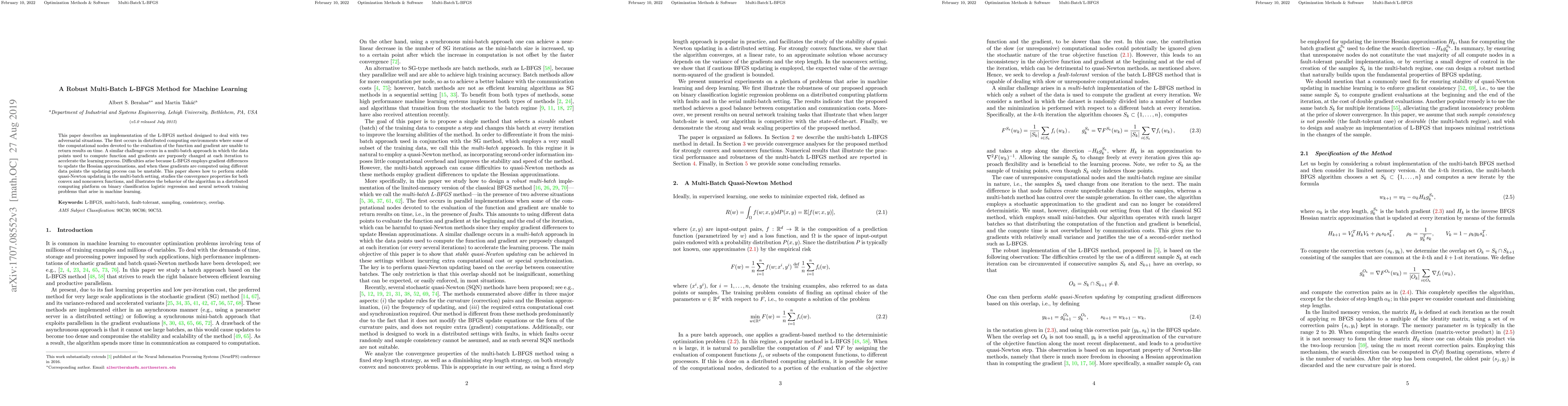This paper presents a robust multi-batch L-BFGS method to handle delays in distributed computing and instability in multi-batch gradient updates. It demonstrates stable quasi-Newton updates and evaluates the algorithm's performance on logistic regression and neural network training in machine learning.