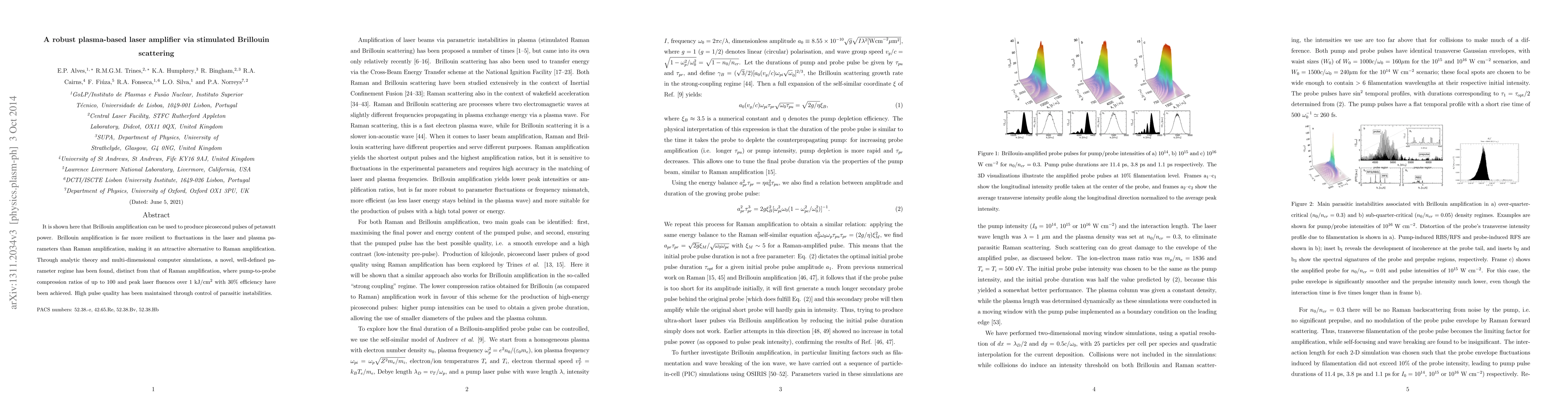 This paper demonstrates the use of Brillouin amplification for generating picosecond pulses of petawatt power, showing greater resilience to parameter fluctuations compared to Raman amplification. Through theoretical analysis and simulations, a new parameter regime is identified, achieving high efficiency and peak fluences while maintaining pulse quality.