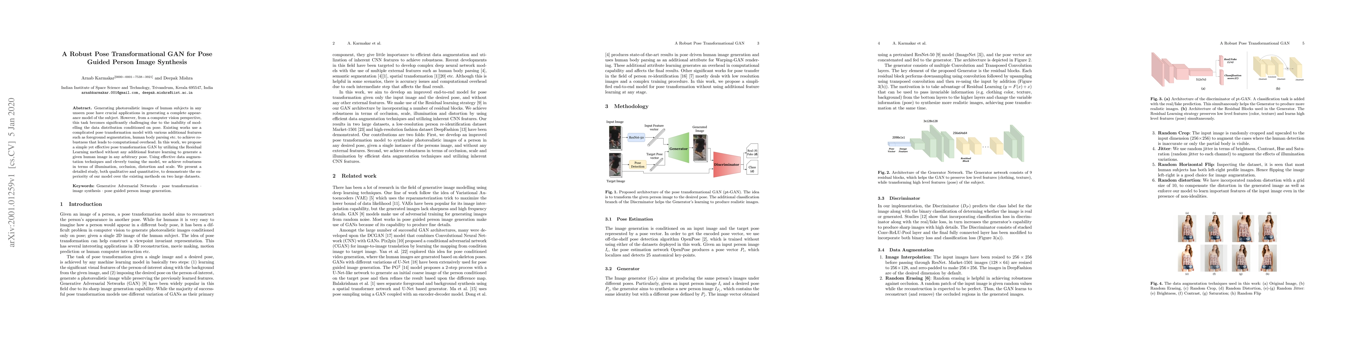 Generating photorealistic images of human subjects in any unseen pose have crucial applications in generating a complete appearance model of the subject. However, from a computer vision perspective, this task becomes significantly challenging due to the inability of modelling the data distribution conditioned on pose. Existing works use a complicated pose transformation model with various additional features such as foreground segmentation, human body parsing etc. to achieve robustness that leads to computational overhead. In this work, we propose a simple yet effective pose transformation GAN by utilizing the Residual Learning method without any additional feature learning to generate a given human image in any arbitrary pose. Using effective data augmentation techniques and cleverly tuning the model, we achieve robustness in terms of illumination, occlusion, distortion and scale. We present a detailed study, both qualitative and quantitative, to demonstrate the superiority of our model over the existing methods on two large datasets.