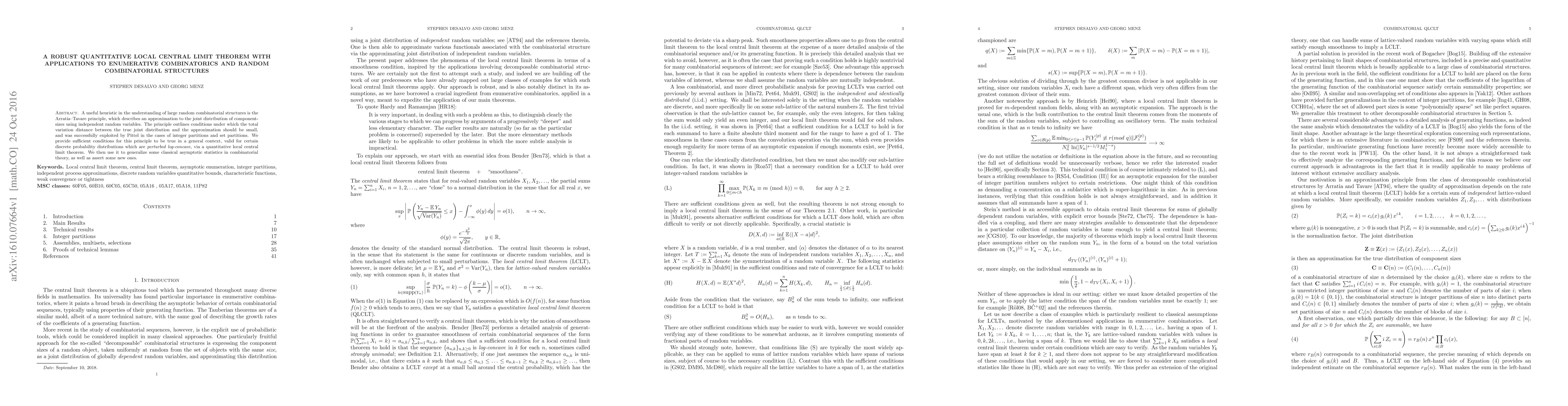 A useful heuristic in the understanding of large random combinatorial structures is the Arratia-Tavare principle, which describes an approximation to the joint distribution of component-sizes using independent random variables. The principle outlines conditions under which the total variation distance between the true joint distribution and the approximation should be small, and was successfully exploited by Pittel in the cases of integer partitions and set partitions. We provide sufficient conditions for this principle to be true in a general context, valid for certain discrete probability distributions which are $\textit{perturbed log-concave}$, via a quantitative local central limit theorem. We then use it to generalize some classical asymptotic statistics in combinatorial theory, as well as assert some new ones.