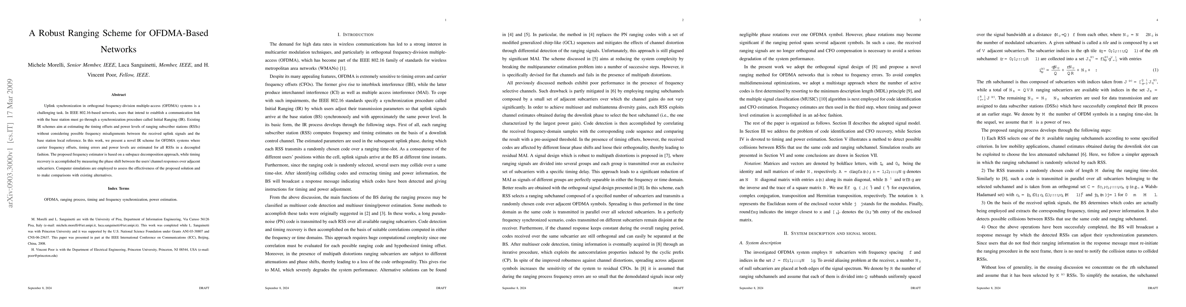 Uplink synchronization in orthogonal frequency-division multiple-access (OFDMA) systems is a challenging task. In IEEE 802.16-based networks, users that intend to establish a communication link with the base station must go through a synchronization procedure called Initial Ranging (IR). Existing IR schemes aim at estimating the timing offsets and power levels of ranging subscriber stations (RSSs) without considering possible frequency misalignments between the received uplink signals and the base station local reference. In this work, we present a novel IR scheme for OFDMA systems where carrier frequency offsets, timing errors and power levels are estimated for all RSSs in a decoupled fashion. The proposed frequency estimator is based on a subspace decomposition approach, while timing recovery is accomplished by measuring the phase shift between the users'channel responses over adjacent subcarriers. Computer simulations are employed to assess the effectiveness of the proposed solution and to make comparisons with existing alternatives.