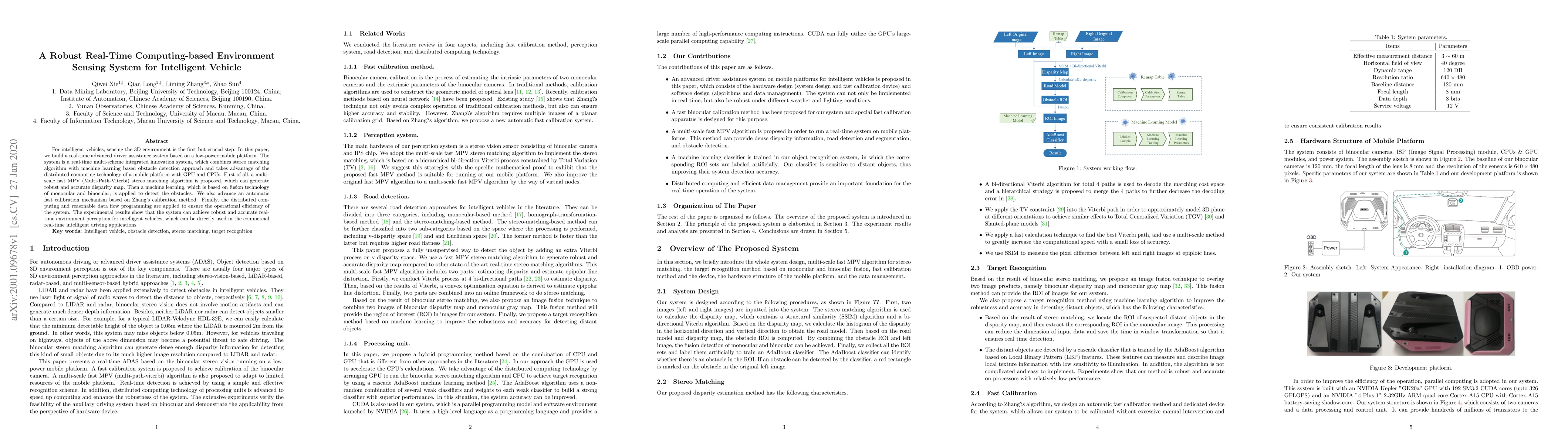 This paper presents a real-time computing-based environment sensing system for intelligent vehicles, integrating a multi-scale stereo matching algorithm and machine learning for obstacle detection, along with distributed computing for efficiency. Experimental results demonstrate robust real-time perception suitable for commercial intelligent driving applications.