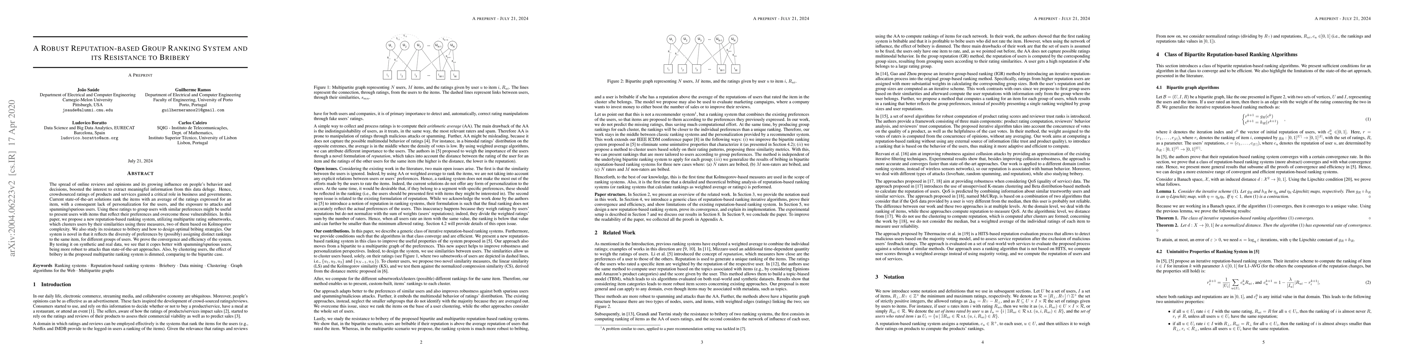A new reputation-based ranking system uses multipartite rating subnetworks to group users with similar preferences, offering better protection against spamming and bribery than existing approaches.