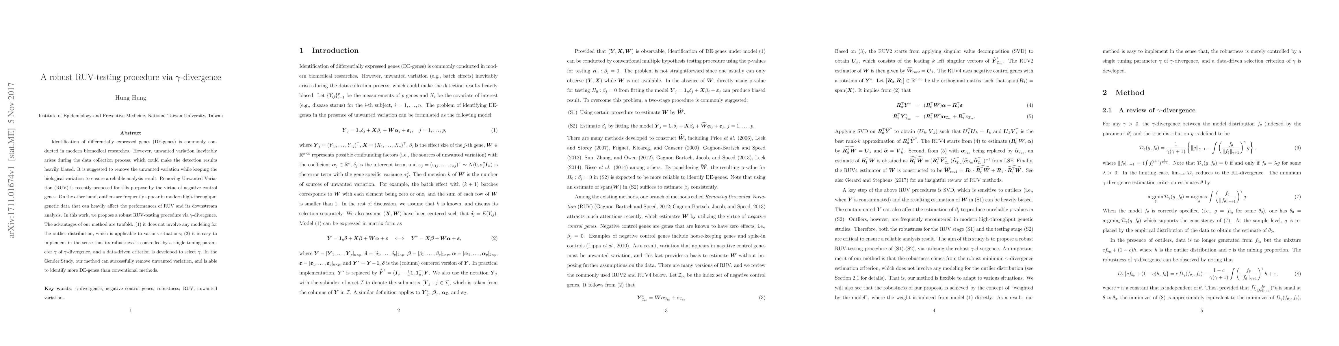 The paper proposes a robust RUV-testing procedure using gamma-divergence to identify differentially expressed genes while mitigating unwanted variation and outliers in high-throughput genetic data, offering simplicity in implementation and improved detection accuracy.