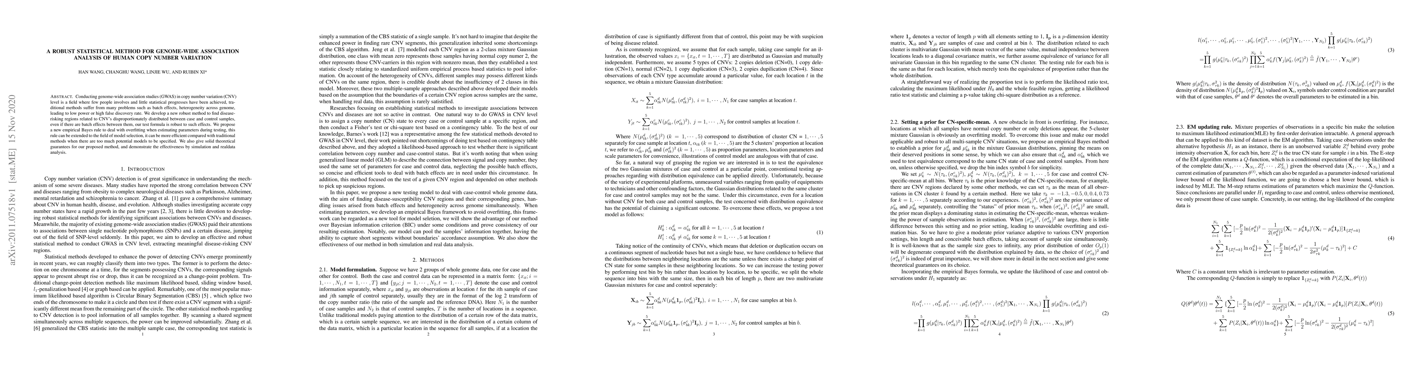 This paper introduces a robust statistical method for genome-wide association studies of human copy number variation (CNV), addressing issues like batch effects and genomic heterogeneity. The new empirical Bayes rule helps mitigate overfitting and provides theoretical guarantees, demonstrated through simulations and real data analysis.