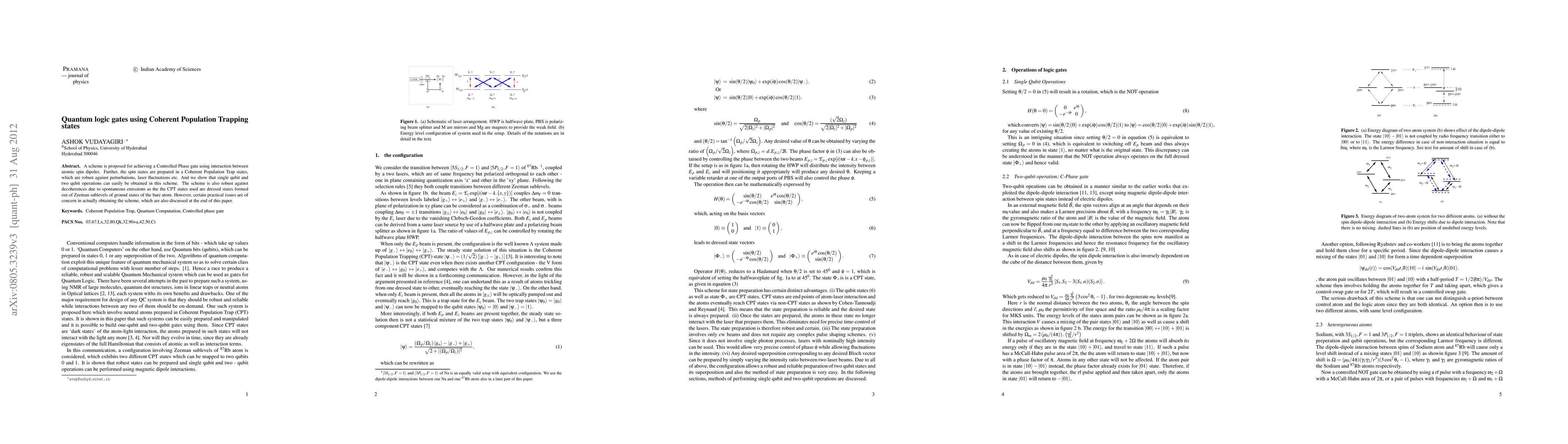 The research presents a robust system for quantum computation using neutral atoms, exploiting a multilevel atomic system interacting with two lasers to form Coherent Population Trap (CPT) states. These CPT states are mapped to qubits for quantum computation, with preparation of any desired state and formation of CNOT gates explained.