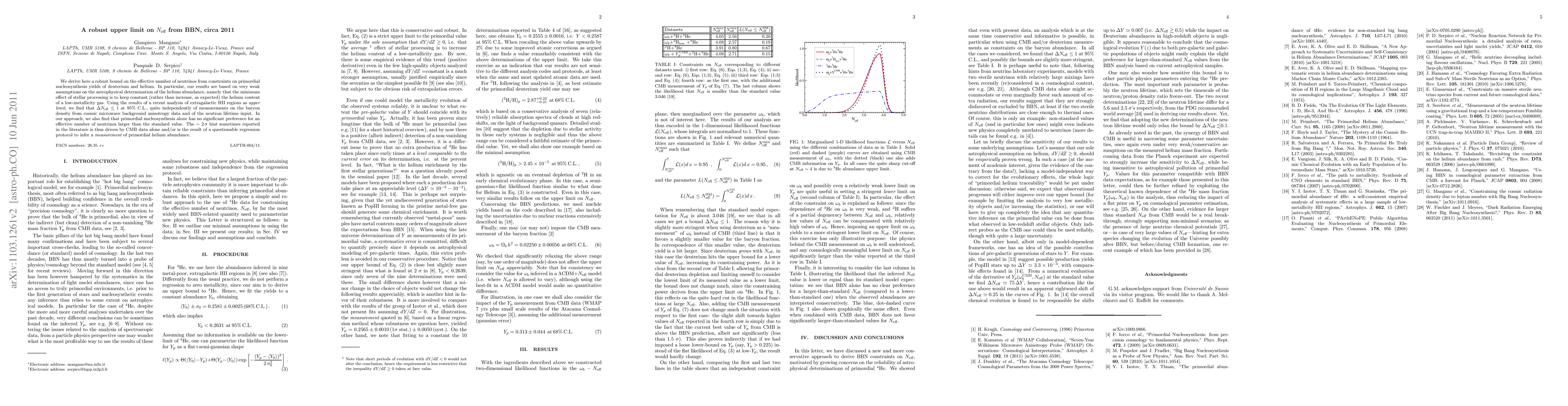 We derive here a robust bound on the effective number of neutrinos from constraints on primordial nucleosynthesis yields of deuterium and helium. In particular, our results are based on very weak assumptions on the astrophysical determination of the helium abundance, namely that the minimum effect of stellar processing is to keep constant (rather than increase, as expected) the helium content of a low-metallicity gas. Using the results of a recent analysis of extragalactic HII regions as upper limit, we find that Delta Neff<= 1 at 95 % C.L., quite independently of measurements on the baryon density from cosmic microwave background anisotropy data and of the neutron lifetime input. In our approach, we also find that primordial nucleosynthesis alone has no significant preference for an effective number of neutrinos larger than the standard value. The ~2 sigma hint sometimes reported in the literature is thus driven by CMB data alone and/or is the result of a questionable regression protocol to infer a measurement of primordial helium abundance.