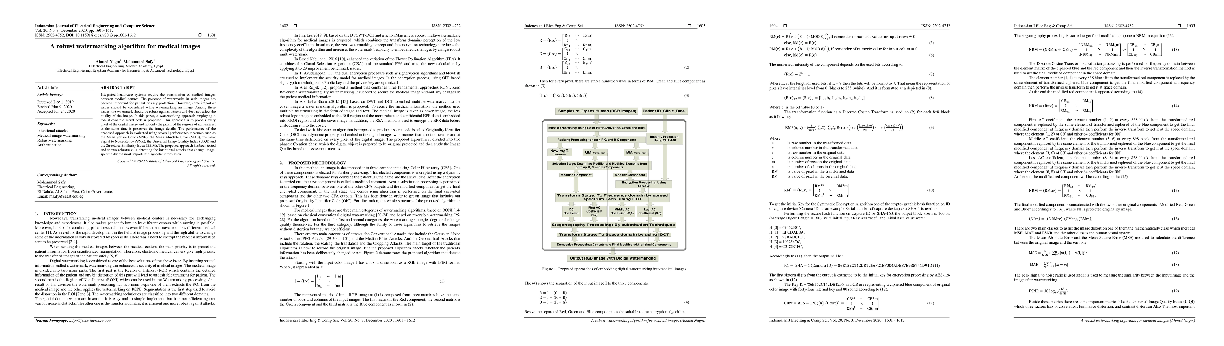 This paper proposes a robust watermarking algorithm for medical images that embeds a dynamic secret code into every pixel to protect patient privacy while maintaining image quality. The algorithm's performance is evaluated using multiple metrics, demonstrating its robustness against intentional attacks without compromising image details.