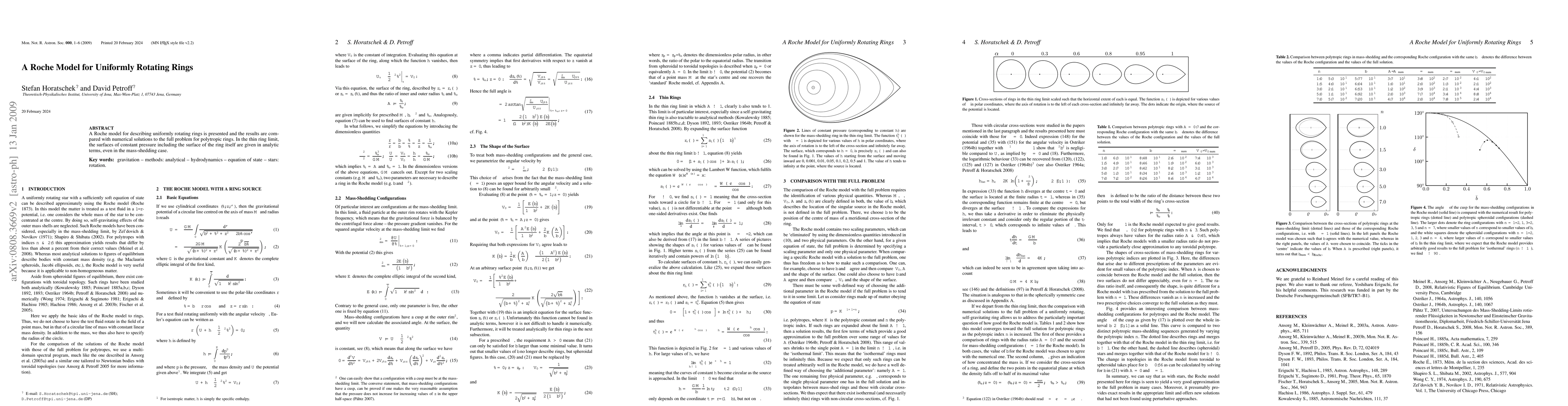A Roche model for describing uniformly rotating rings is presented and the results are compared with numerical solutions to the full problem for polytropic rings. In the thin ring limit, the surfaces of constant pressure including the surface of the ring itself are given in analytic terms, even in the mass-shedding case.