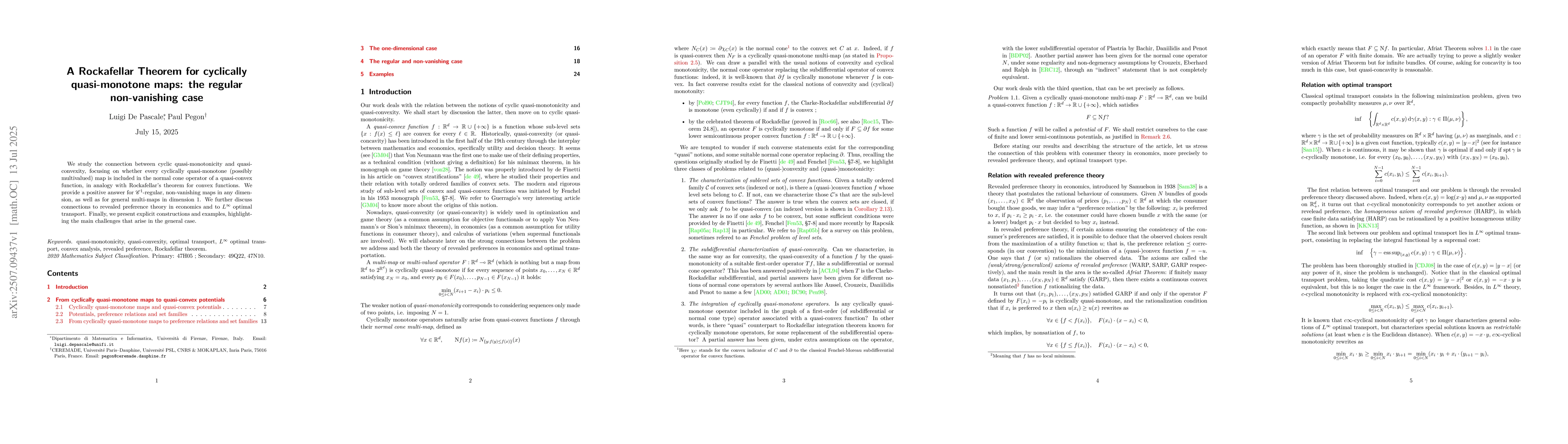We study the connection between cyclic quasi-monotonicity and quasi-convexity, focusing on whether every cyclically quasi-monotone (possibly multivalued) map is included in the normal cone operator of a quasi-convex function, in analogy with Rockafellar's theorem for convex functions. We provide a positive answer for $\mathscr{C}^1$-regular, non-vanishing maps in any dimension, as well as for general multi-maps in dimension $1$. We further discuss connections to revealed preference theory in economics and to $L^\infty$ optimal transport. Finally, we present explicit constructions and examples, highlighting the main challenges that arise in the general case.