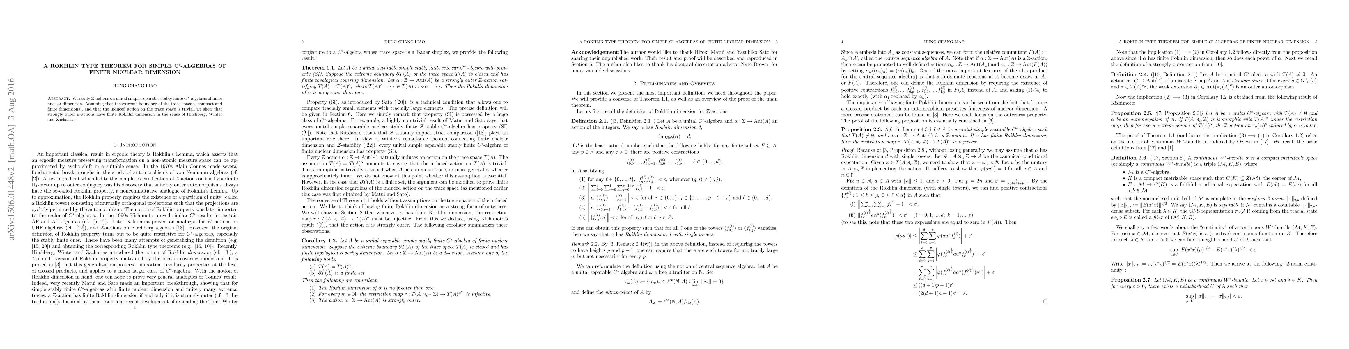 We study Z-actions on unital simple separable stably finite C*-algebras of finite nuclear dimension. Assuming that the extreme boundary of the trace space is compact and finite dimensional, and that the induced action on the trace space is trivial, we show that strongly outer Z-actions have finite Rokhlin dimension in the sense of Hirshberg, Winter and Zacharias.