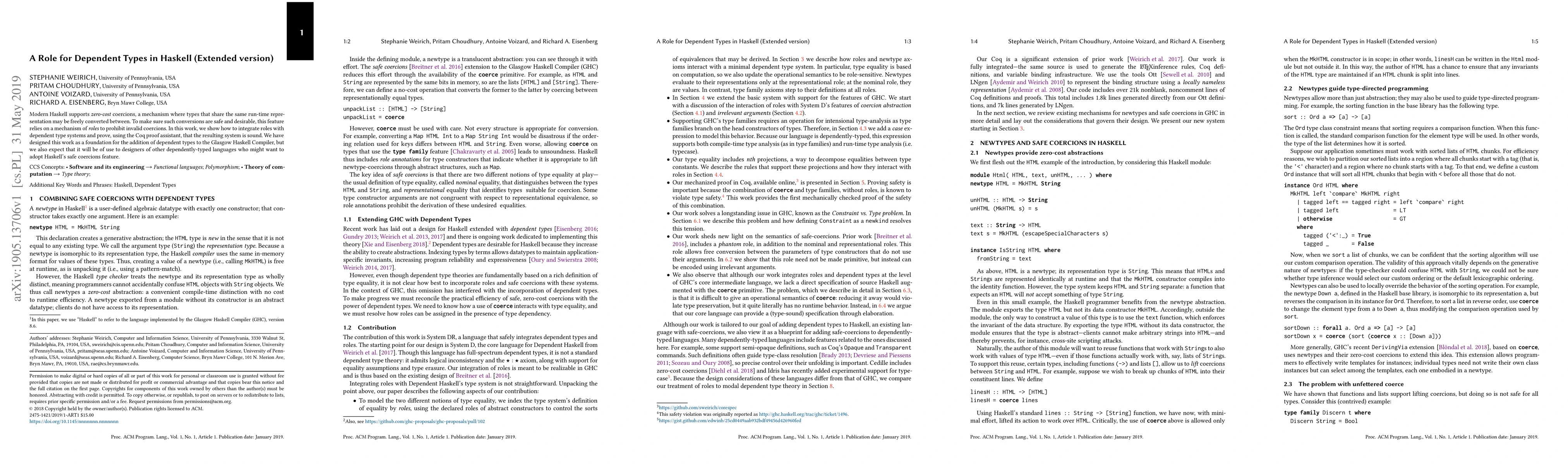 This paper explores integrating roles with dependent type systems in Haskell, leveraging zero-cost coercions for type safety. It proves the soundness of this approach using Coq, laying a foundation for extending the Glasgow Haskell Compiler with dependent types while potentially benefiting other dependently-typed languages.