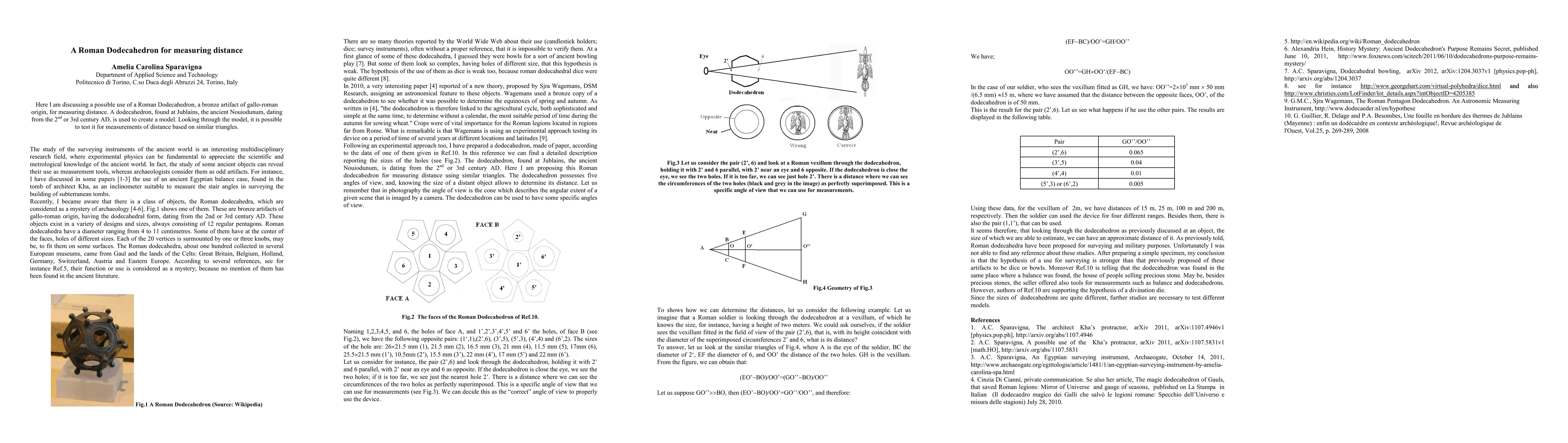 This paper explores the potential use of a Roman dodecahedron artifact from the 2nd or 3rd century AD, discovered in Jublains, for measuring distances through a model based on principles of similar triangles. The study aims to determine if this ancient artifact could serve as a primitive distance-measuring tool.