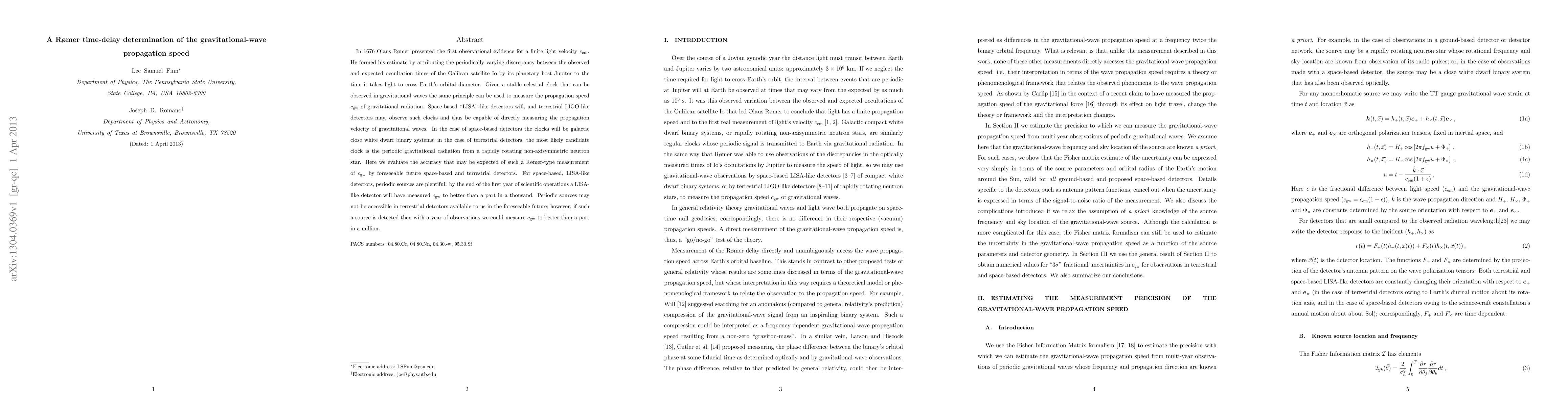 This paper explores the application of Rømer's method for determining the speed of gravitational waves using periodic sources observed by future space-based and terrestrial detectors. It predicts that space-based detectors like LISA can measure the gravitational wave speed to better than a part in a thousand, while terrestrial detectors like LIGO could achieve a part in a million if suitable sources are detected.
