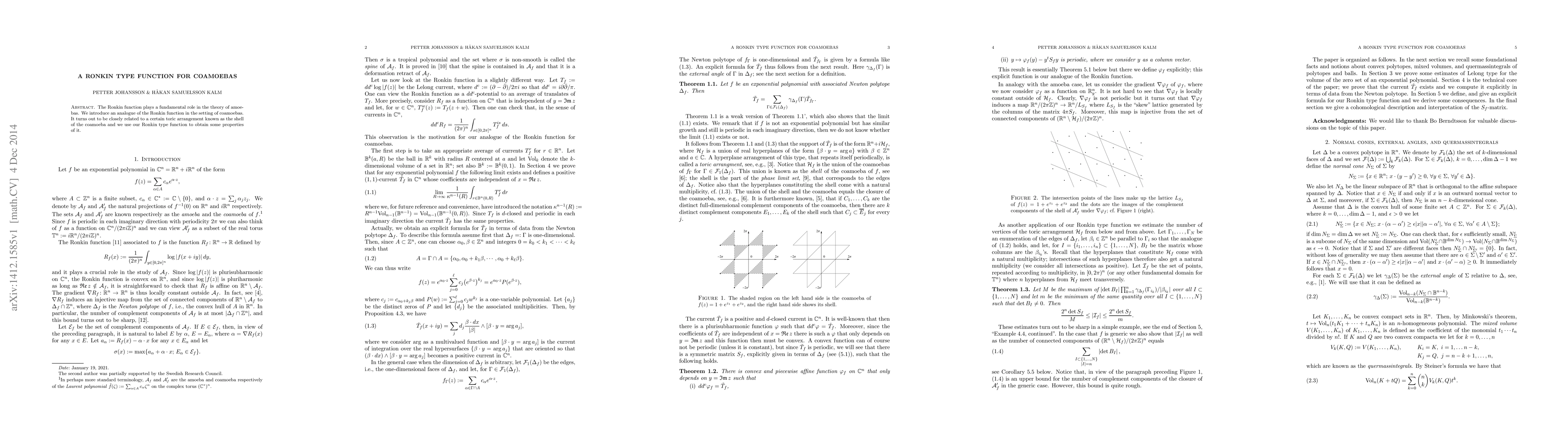 This paper introduces a Ronkin function analogue for coamoebas, revealing its connection to a specific toric arrangement called the shell of the coamoeba, and uses this to derive properties related to coamoebas.