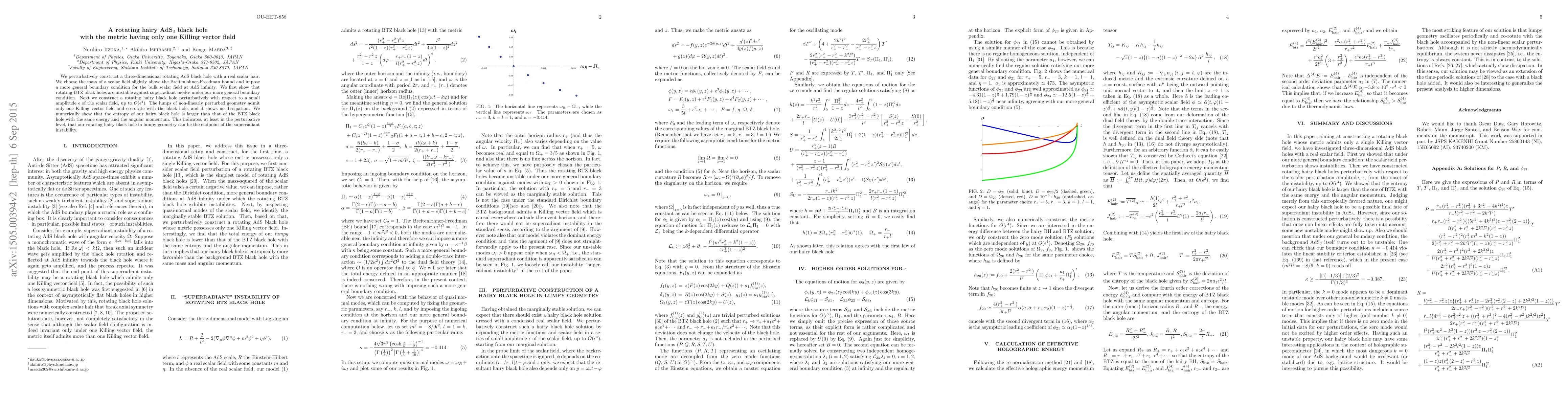 We perturbatively construct a three-dimensional rotating AdS black hole with a real scalar hair. We choose the mass of a scalar field slightly above the Breitenlohner-Freedman bound and impose a more general boundary condition for the bulk scalar field at AdS infinity. We first show that rotating BTZ black holes are unstable against superradiant modes under our more general boundary condition. Next we construct a rotating hairy black hole perturbatively with respect to a small amplitude $\epsilon$ of the scalar field, up to $O(\epsilon^4)$. The lumps of non-linearly perturbed geometry admit only one Killing vector field and co-rotate with the black hole, and it shows no dissipation. We numerically show that the entropy of our hairy black hole is larger than that of the BTZ black hole with the same energy and the angular momentum. This indicates, at least in the perturbative level, that our rotating hairy black hole in lumpy geometry can be the endpoint of the superradiant instability.