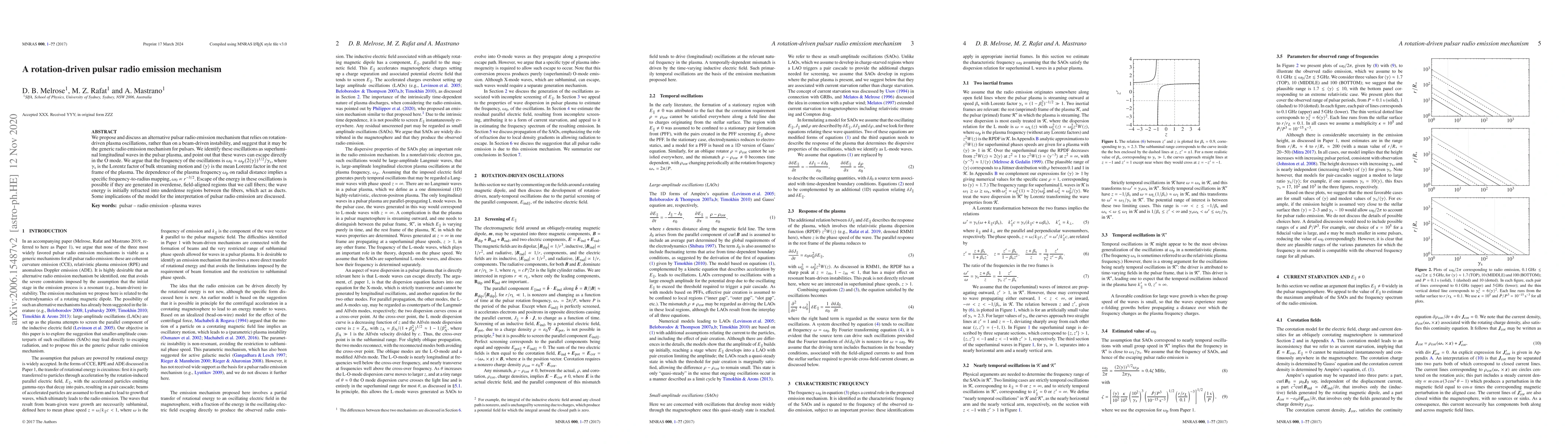 We propose and discuss an alternative pulsar radio emission mechanism that relies on rotation-driven plasma oscillations, rather than on a beam-driven instability, and suggest that it may be the generic radio emission mechanism for pulsars. We identify these oscillations as superluminal longitudinal waves in the pulsar plasma, and point out that these waves can escape directly in the O~mode. We argue that the frequency of the oscillations is $\omega_0\approx\omega_{\rm p}(2\langle\gamma\rangle)^{1/2}/\gamma_{\rm s}$, where $\gamma_{\rm s}$ is the Lorentz factor of bulk streaming motion and $\langle\gamma\rangle$ is the mean Lorentz factor in the rest frame of the plasma. The dependence of the plasma frequency $\omega_{\rm p}$ on radial distance implies a specific frequency-to-radius mapping, $\omega_0\propto r^{-3/2}$. Escape of the energy in these oscillations is possible if they are generated in overdense, field-aligned regions that we call fibers; the wave energy is initially refracted into underdense regions between the fibers, which act as ducts. Some implications of the model for the interpretation of pulsar radio emission are discussed.
