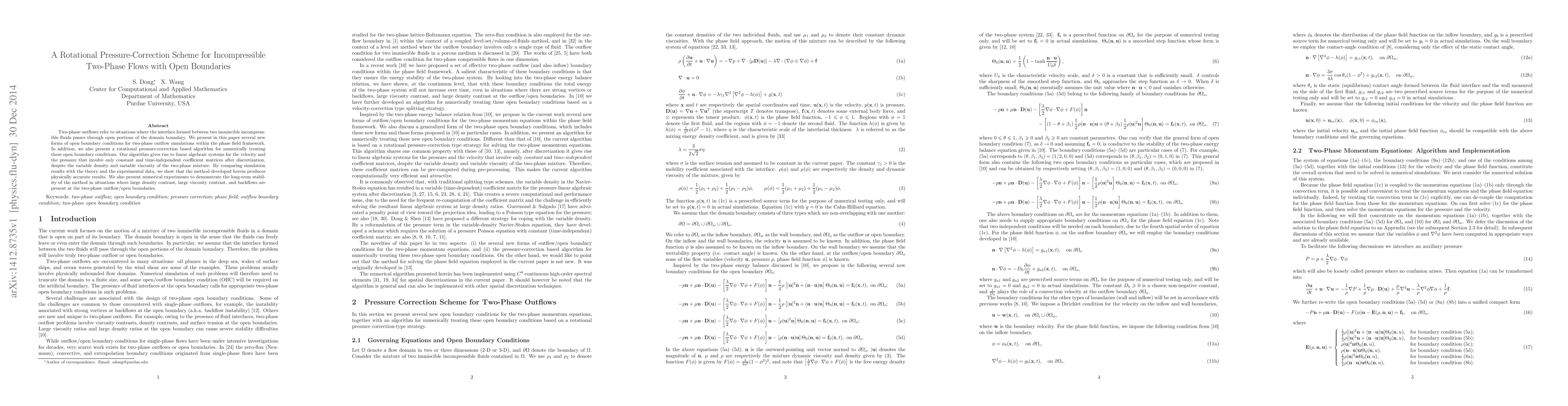 This paper introduces new open boundary conditions and a rotational pressure-correction scheme for simulating incompressible two-phase flows with open boundaries. The method produces stable, physically accurate results even with large density and viscosity contrasts, as demonstrated by comparisons with theory and experiments.