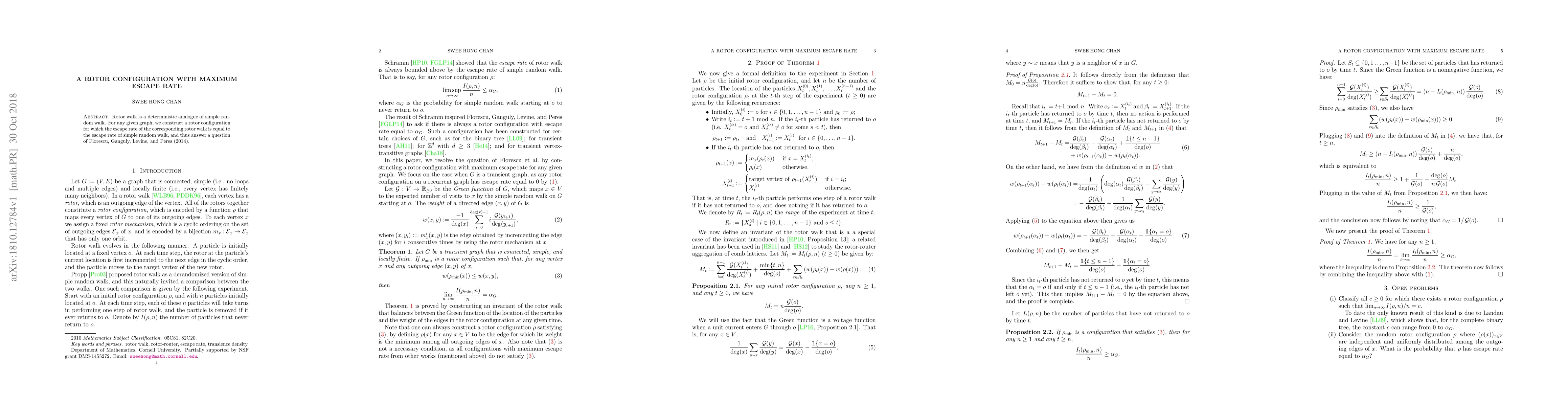 This paper constructs a rotor configuration on any given graph that achieves the maximum escape rate equivalent to that of simple random walk, thereby answering a question posed by Florescu et al. (2014) regarding the equivalence of escape rates between rotor walks and simple random walks.