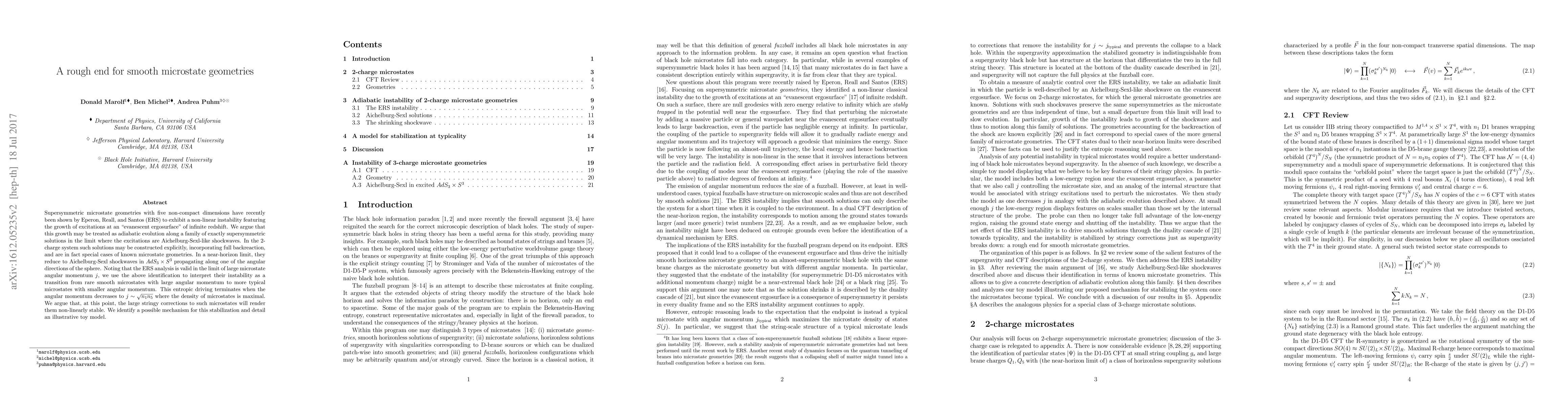 This paper discusses the instability of supersymmetric microstate geometries in five dimensions, showing that the growth of excitations at an evanescent ergosurface can be interpreted as adiabatic evolution towards Aichelburg-Sexl-like shockwaves. It concludes that the instability leads to a transition from smooth microstates with large angular momentum to more typical ones with smaller angular momentum, stabilizing when angular momentum reaches a critical value where microstate density is maximal.