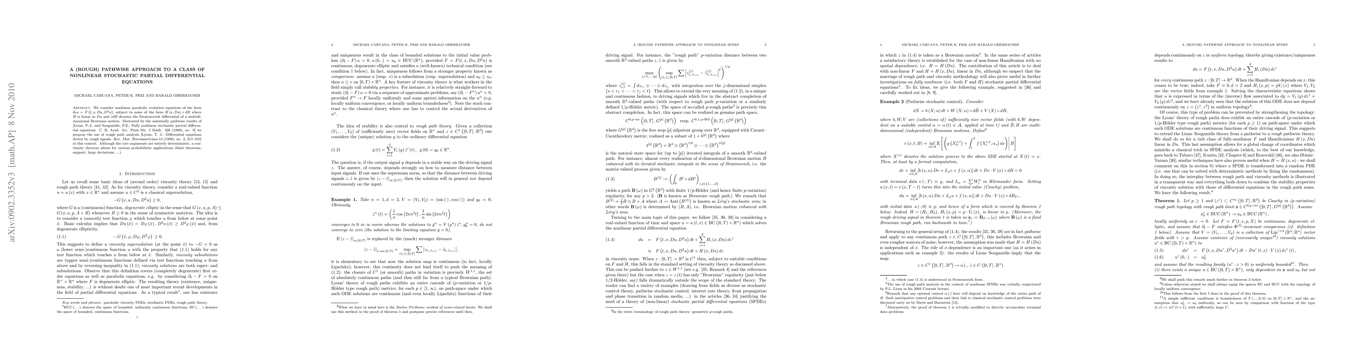 We consider nonlinear parabolic evolution equations of the form $\partial_{t}u=F(t,x,Du,D^{2}u) $, subject to noise of the form $H(x,Du) \circ dB$ where $H$ is linear in $Du$ and $\circ dB$ denotes the Stratonovich differential of a multidimensional Brownian motion. Motivated by the essentially pathwise results of [Lions, P.-L. and Souganidis, P.E.; Fully nonlinear stochastic partial differential equations. C. R. Acad. Sci. Paris S\'{e}r. I Math. 326 (1998), no. 9] we propose the use of rough path analysis [Lyons, T. J.; Differential equations driven by rough signals. Rev. Mat. Iberoamericana 14 (1998), no. 2, 215--310] in this context. Although the core arguments are entirely deterministic, a continuity theorem allows for various probabilistic applications (limit theorems, support, large deviations, ...).