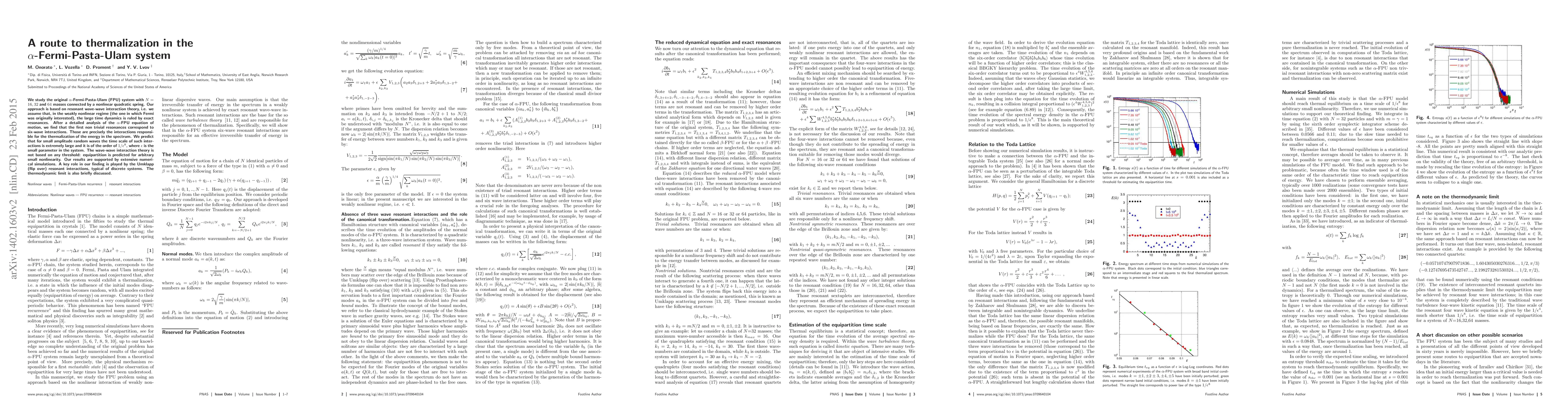 We study the original $\alpha$-Fermi-Pasta-Ulam (FPU) system with $N=16,32$ and $64$ masses connected by a nonlinear quadratic spring. Our approach is based on resonant wave-wave interaction theory, i.e. we assume that, in the weakly nonlinear regime (the one in which Fermi was originally interested), the large time dynamics is ruled by exact resonances. After a detailed analysis of the $\alpha$-FPU equation of motion, we find that the first non trivial resonances correspond to six-wave interactions. Those are precisely the interactions responsible for the thermalization of the energy in the spectrum. We predict that for small amplitude random waves the time scale of such interactions is extremely large and it is of the order of $1/\epsilon^8$, where $\epsilon$ is the small parameter in the system. The wave-wave interaction theory is not based on any threshold: equipartition is predicted for arbitrary small nonlinearity. Our results are supported by extensive numerical simulations. A key role in our finding is played by the {\it Umklapp} (flip over) resonant interactions, typical of discrete systems. The thermodynamic limit is also briefly discussed.