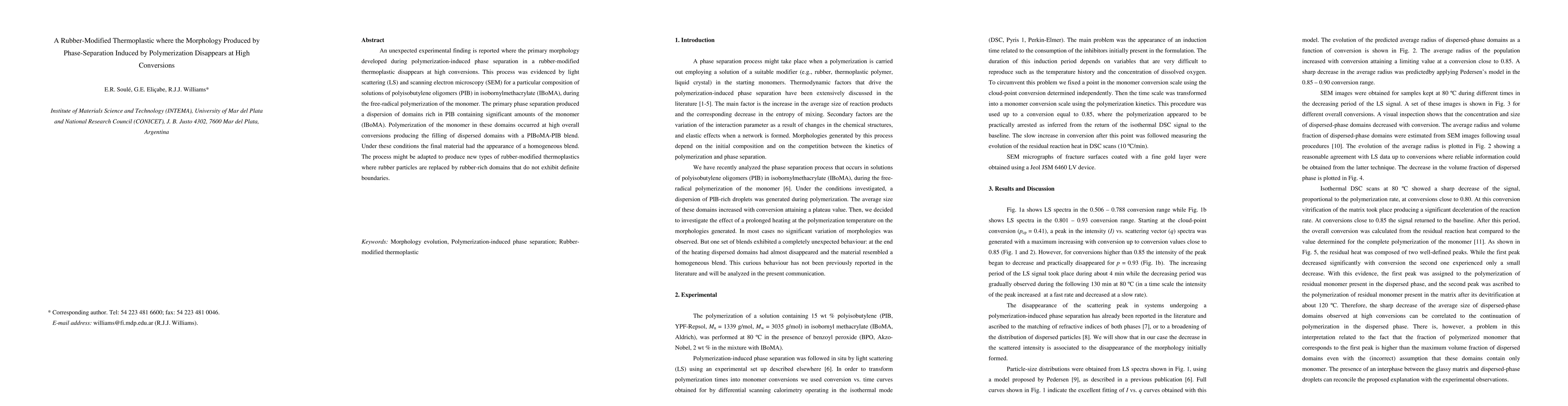 Polymerization-induced phase separation, rubber-modified thermoplastic, morphology transformation, high conversion, homogeneous blend.