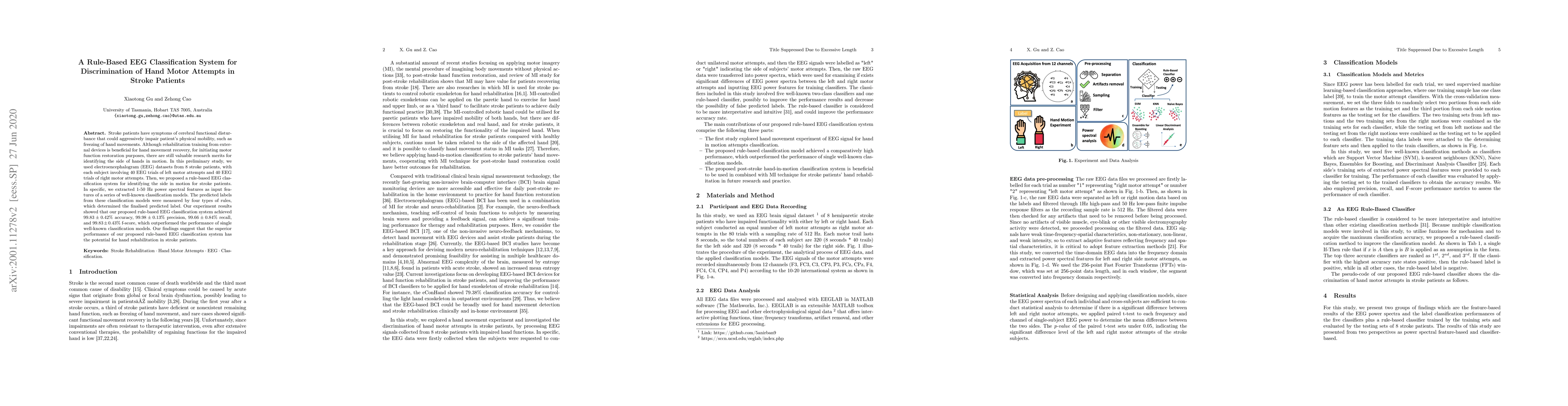 This study developed a rule-based EEG classification system to identify motor attempts in stroke patients, achieving high accuracy, precision, recall, and f-score. The system outperformed individual classification models, suggesting potential for aiding hand rehabilitation in stroke recovery.