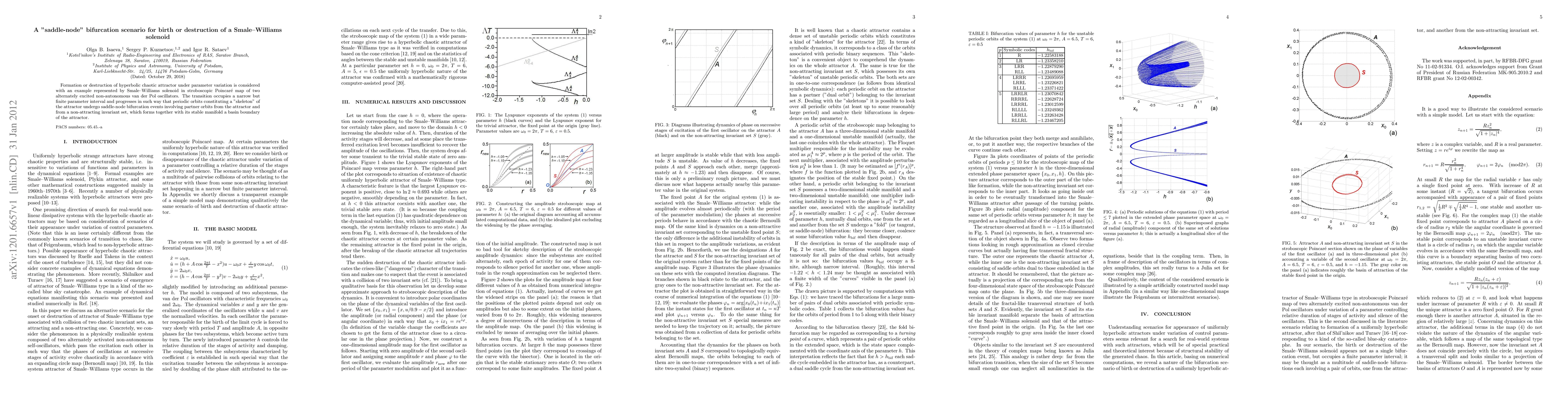 Researchers studied the creation or destruction of a hyperbolic chaotic attractor in a specific mathematical model, finding that it undergoes a narrow but finite parameter interval transition with saddle-node bifurcation events.