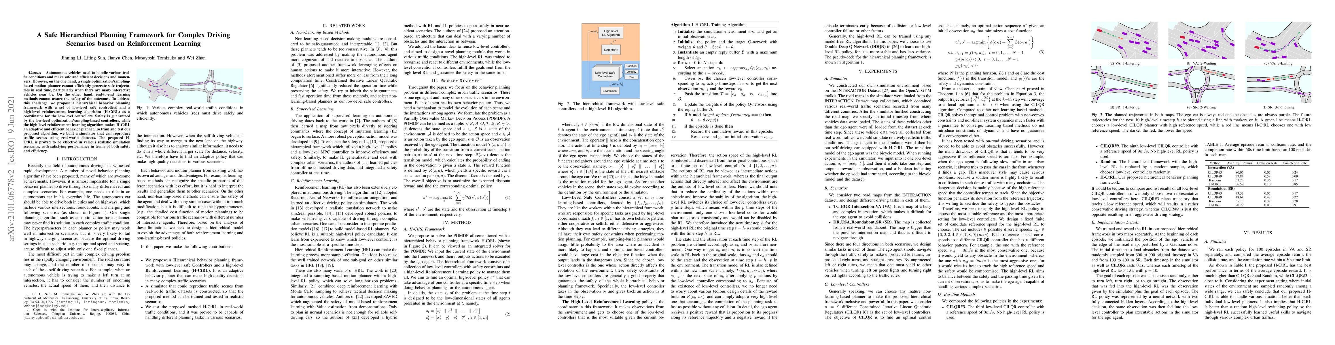 This paper proposes a hierarchical planning framework (H-CtRL) for autonomous vehicles, combining low-level safe optimization/sampling-based controllers with high-level reinforcement learning to ensure both safety and efficiency in complex driving scenarios. The framework was tested in a simulator using real-world datasets, demonstrating effective performance.