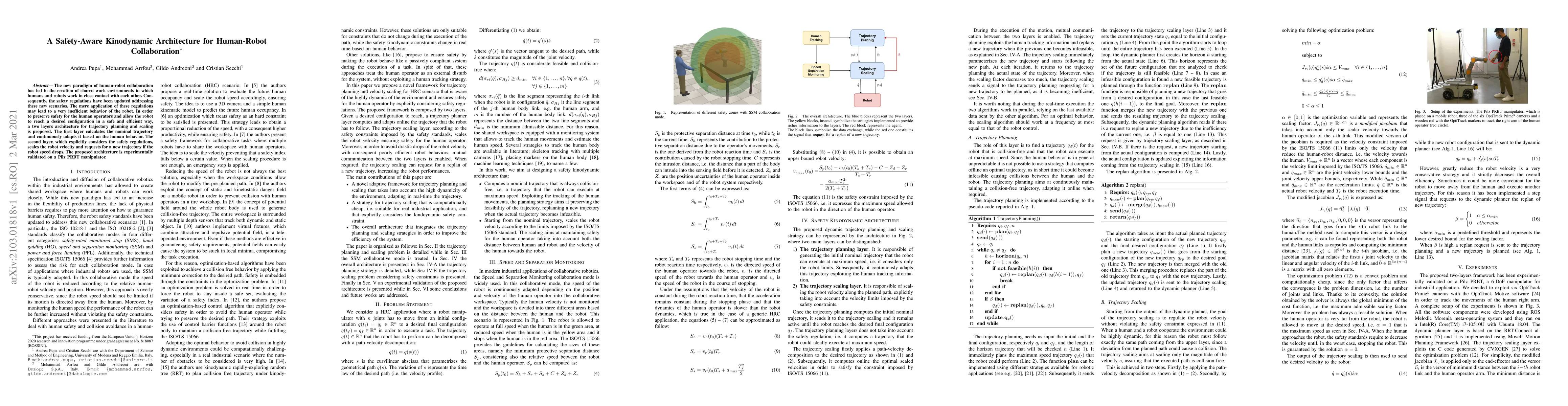 This paper proposes a two-layer architecture for safe and efficient human-robot collaboration, where the first layer dynamically adapts robot trajectories based on human behavior, and the second layer ensures compliance with safety regulations by scaling robot velocity and adjusting trajectories as needed. The method is validated on a Pilz PRBT manipulator.