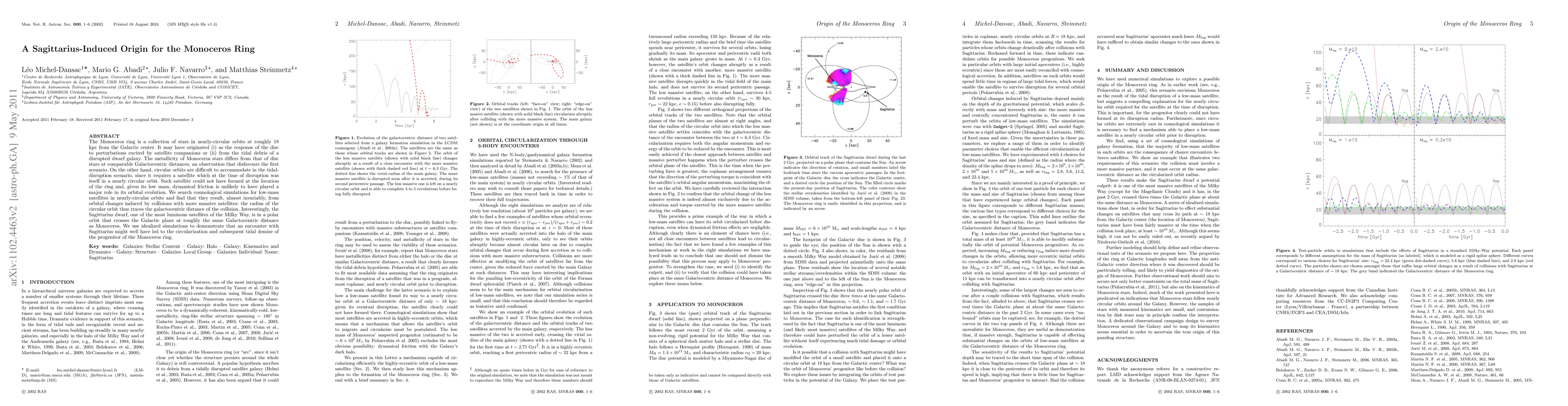 The Monoceros ring is a collection of stars in nearly-circular orbits at roughly 18 kpc from the Galactic center. It may have originated (i) as the response of the disc to perturbations excited by satellite companions or (ii) from the tidal debris of a disrupted dwarf galaxy. The metallicity of Monoceros stars differs from that of disc stars at comparable Galactocentric distances, an observation that disfavours the first scenario. On the other hand, circular orbits are difficult to accommodate in the tidal-disruption scenario, since it requires a satellite which at the time of disruption was itself in a nearly circular orbit. Such satellite could not have formed at the location of the ring and, given its low mass, dynamical friction is unlikely to have played a major role in its orbital evolution. We search cosmological simulations for low-mass satellites in nearly-circular orbits and find that they result, almost invariably, from orbital changes induced by collisions with more massive satellites: the radius of the circular orbit thus traces the galactocentric distance of the collision. Interestingly, the Sagittarius dwarf, one of the most luminous satellites of the Milky Way, is in a polar orbit that crosses the Galactic plane at roughly the same Galactocentric distance as Monoceros. We use idealized simulations to demonstrate that an encounter with Sagittarius might well have led to the circularization and subsequent tidal demise of the progenitor of the Monoceros ring.