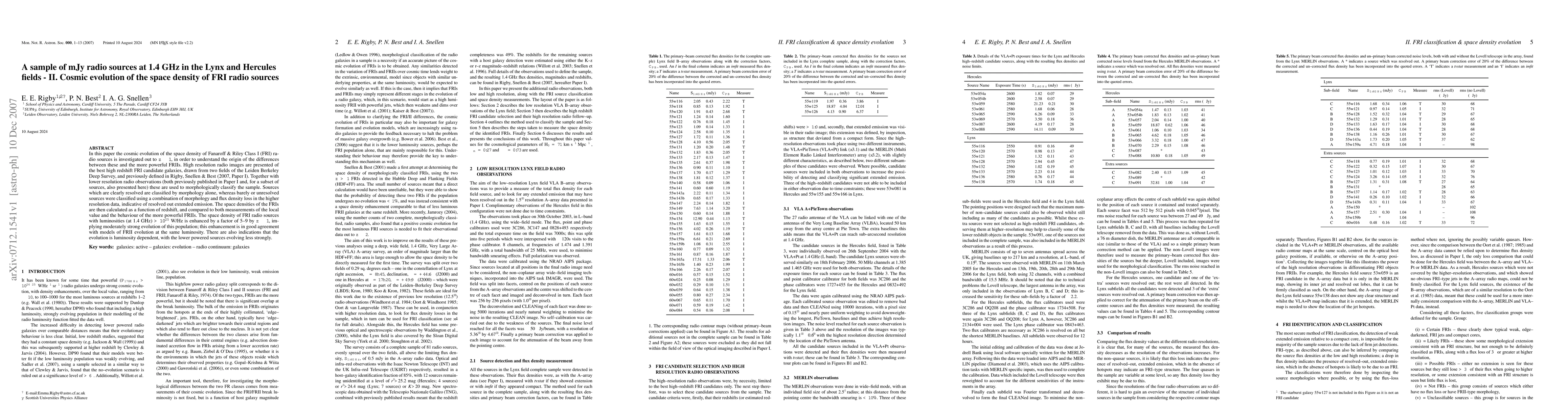 The study investigates the cosmic evolution of Fanaroff & Riley Class I (FRI) radio sources, finding a 5-9 fold increase in space density at z ~ 1, with possible luminosity-dependent evolution.