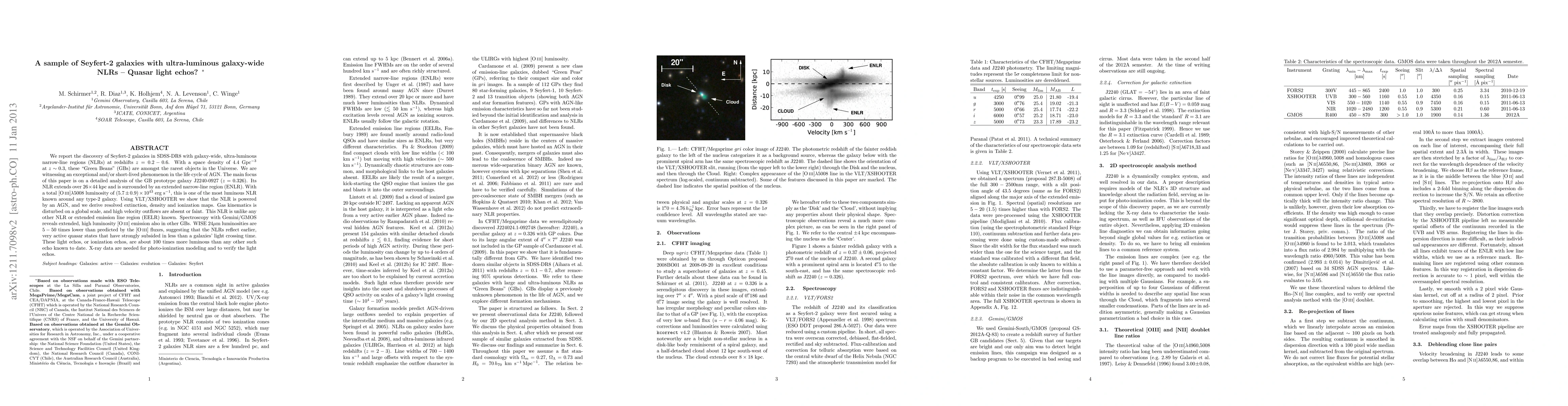 We report the discovery of Seyfert-2 galaxies in SDSS-DR8 with galaxy-wide, ultra-luminous narrow-line regions (NLRs) at redshifts z=0.2-0.6. With a space density of 4.4 per cubic Gpc at z~0.3, these "Green Beans" (GBs) are amongst the rarest objects in the Universe. We are witnessing an exceptional and/or short-lived phenomenon in the life cycle of AGN. The main focus of this paper is on a detailed analysis of the GB prototype galaxy J2240-0927 (z=0.326). Its NLR extends over 26x44 kpc and is surrounded by an extended narrow-line region (ENLR). With a total [OIII]5008 luminosity of (5.7+/-0.9)x10e43 erg/s, this is one of the most luminous NLR known around any type-2 galaxy. Using VLT/XSHOOTER we show that the NLR is powered by an AGN, and we derive resolved extinction, density and ionization maps. Gas kinematics is disturbed on a global scale, and high velocity outflows are absent or faint. This NLR is unlike any other NLR or extended emission line region (EELR) known. Spectroscopy with Gemini/GMOS reveals extended, high luminosity [OIII] emission also in other GBs. WISE 24micron luminosities are 5-50 times lower than predicted by the [OIII] fluxes, suggesting that the NLRs reflect earlier, very active quasar states that have strongly subsided in less than a galaxies' light crossing time. These light echos are about 100 times more luminous than any other such light echo known to date. X-ray data are needed for photo-ionization modeling and to verify the light echos.