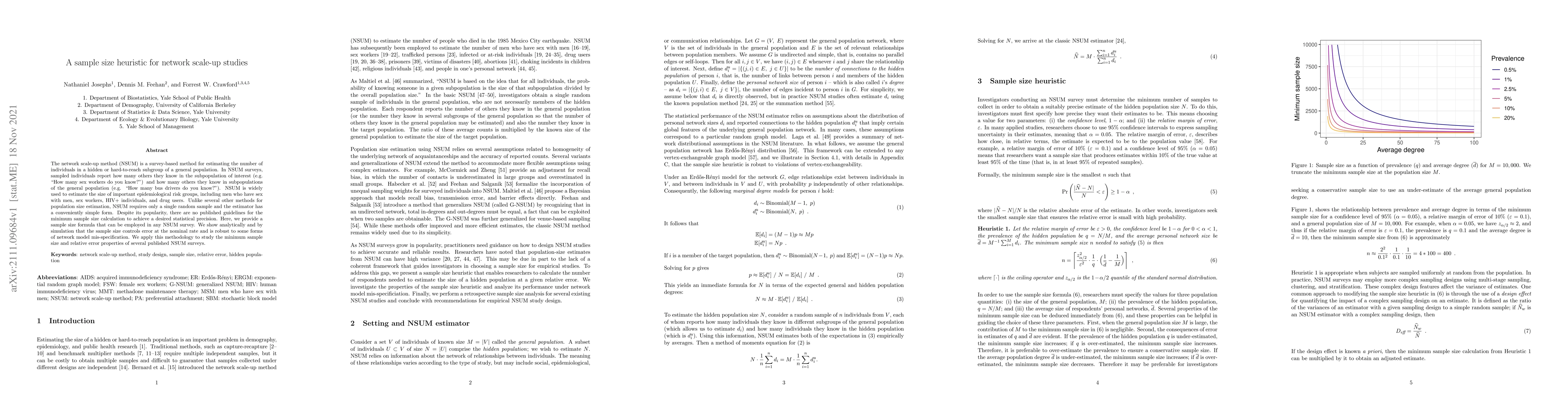 A new formula provides a way to calculate minimum sample sizes for network scale-up studies, ensuring statistical precision and robustness in estimating hidden or hard-to-reach population groups.