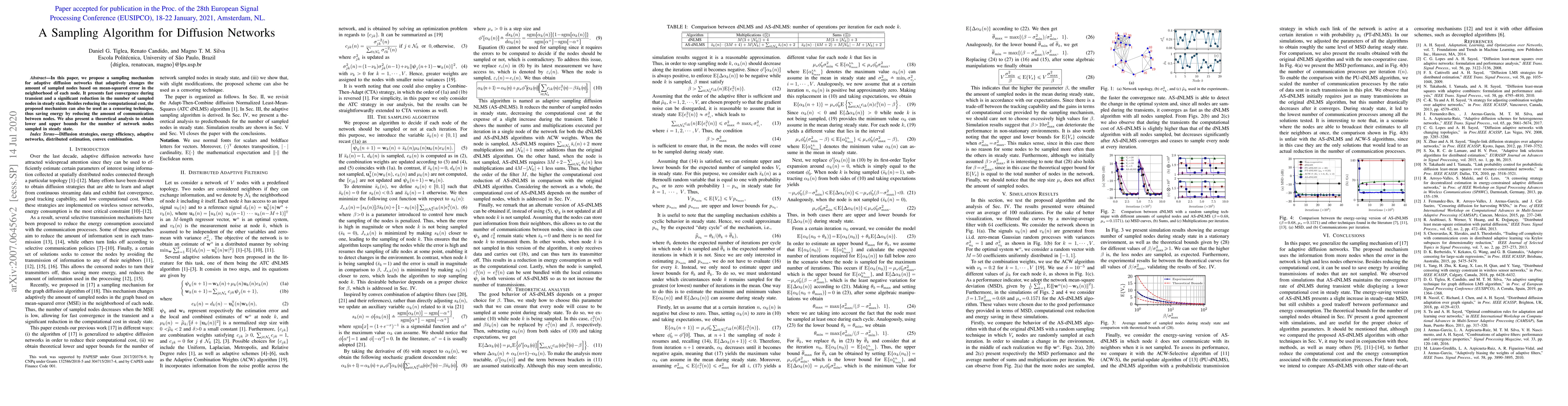 This paper introduces a novel sampling algorithm for adaptive diffusion networks that dynamically adjusts the number of sampled nodes based on local mean-squared error, achieving faster convergence and significantly reducing computational and communication costs. Theoretical analysis provides bounds for steady-state node sampling.