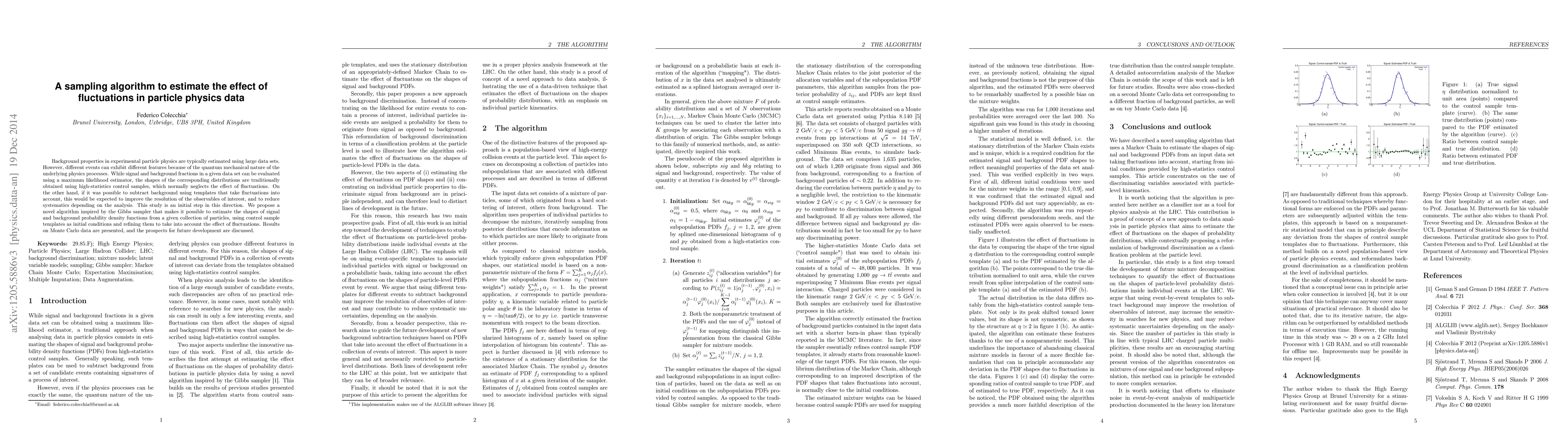 Background properties in experimental particle physics are typically estimated using large data sets. However, different events can exhibit different features because of the quantum mechanical nature of the underlying physics processes. While signal and background fractions in a given data set can be evaluated using a maximum likelihood estimator, the shapes of the corresponding distributions are traditionally obtained using high-statistics control samples, which normally neglects the effect of fluctuations. On the other hand, if it was possible to subtract background using templates that take fluctuations into account, this would be expected to improve the resolution of the observables of interest, and to reduce systematics depending on the analysis. This study is an initial step in this direction. We propose a novel algorithm inspired by the Gibbs sampler that makes it possible to estimate the shapes of signal and background probability density functions from a given collection of particles, using control sample templates as initial conditions and refining them to take into account the effect of fluctuations. Results on Monte Carlo data are presented, and the prospects for future development are discussed.