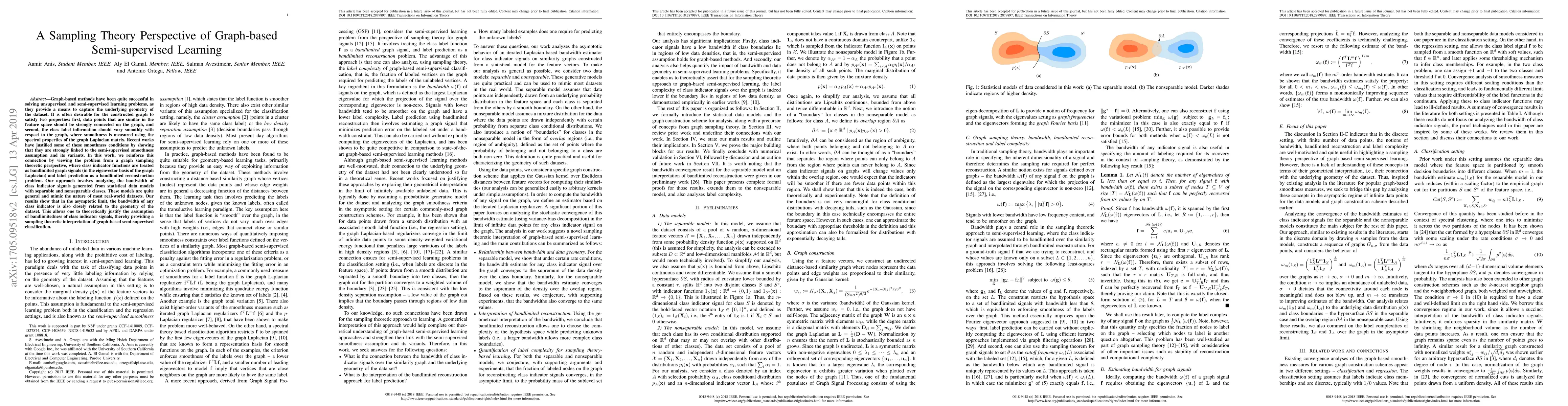 This paper explores graph-based semi-supervised learning through a graph sampling theory lens, treating class labels as bandlimited graph signals. It demonstrates that the bandwidth of class indicator functions correlates with dataset geometry, justifying the bandlimitedness assumption and offering a theoretical foundation for graph-based semi-supervised classification.