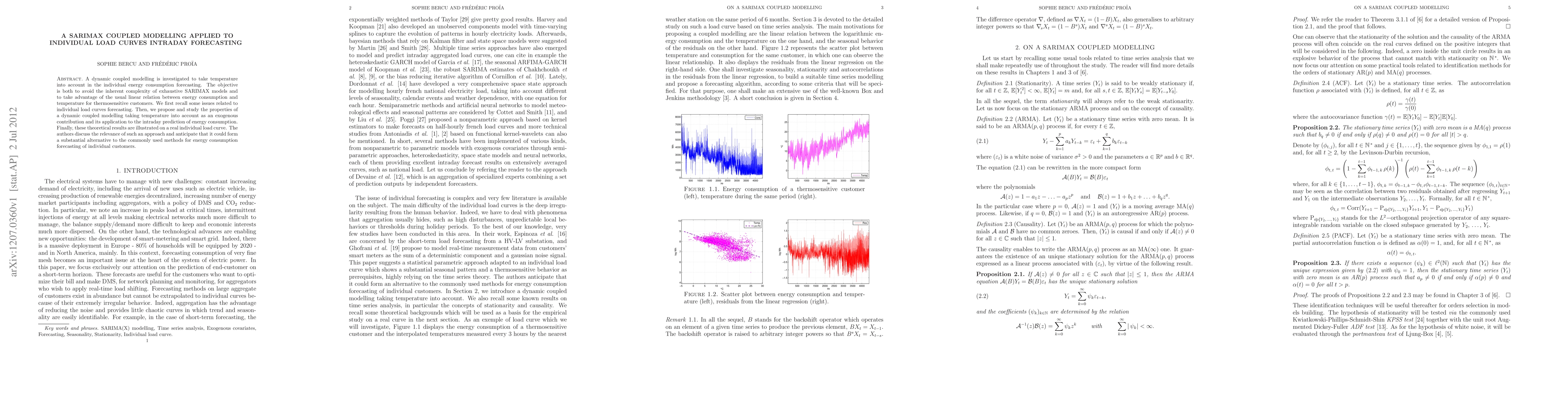 A dynamic coupled modelling is investigated to take temperature into account in the individual energy consumption forecasting. The objective is both to avoid the inherent complexity of exhaustive SARIMAX models and to take advantage of the usual linear relation between energy consumption and temperature for thermosensitive customers. We first recall some issues related to individual load curves forecasting. Then, we propose and study the properties of a dynamic coupled modelling taking temperature into account as an exogenous contribution and its application to the intraday prediction of energy consumption. Finally, these theoretical results are illustrated on a real individual load curve. The authors discuss the relevance of such an approach and anticipate that it could form a substantial alternative to the commonly used methods for energy consumption forecasting of individual customers.