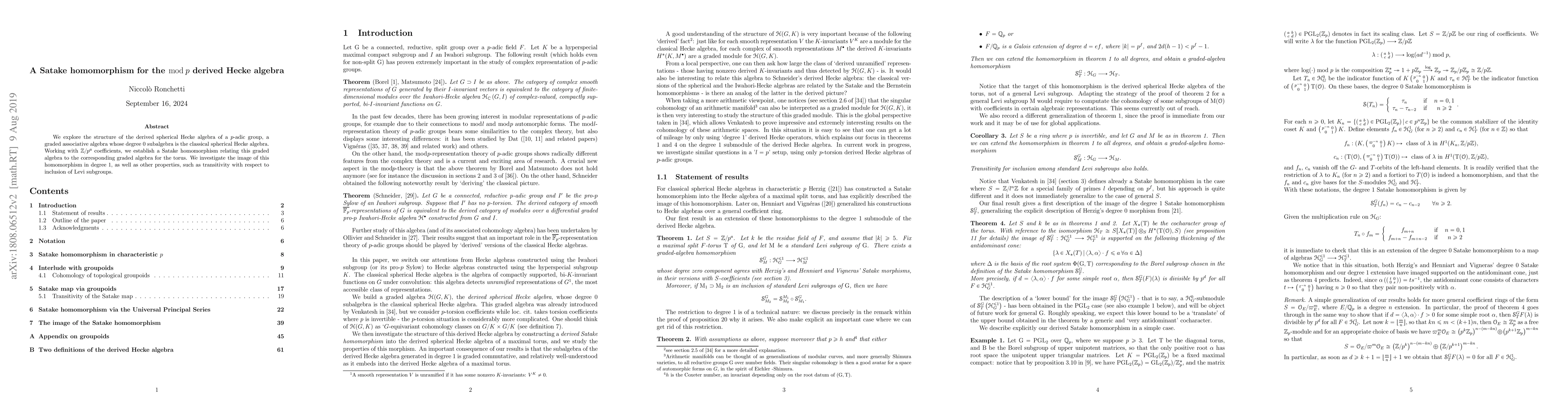 This paper establishes a Satake homomorphism between the derived spherical Hecke algebra of a $p$-adic group and its corresponding torus algebra, exploring key properties like transitivity with respect to Levi subgroup inclusions.
