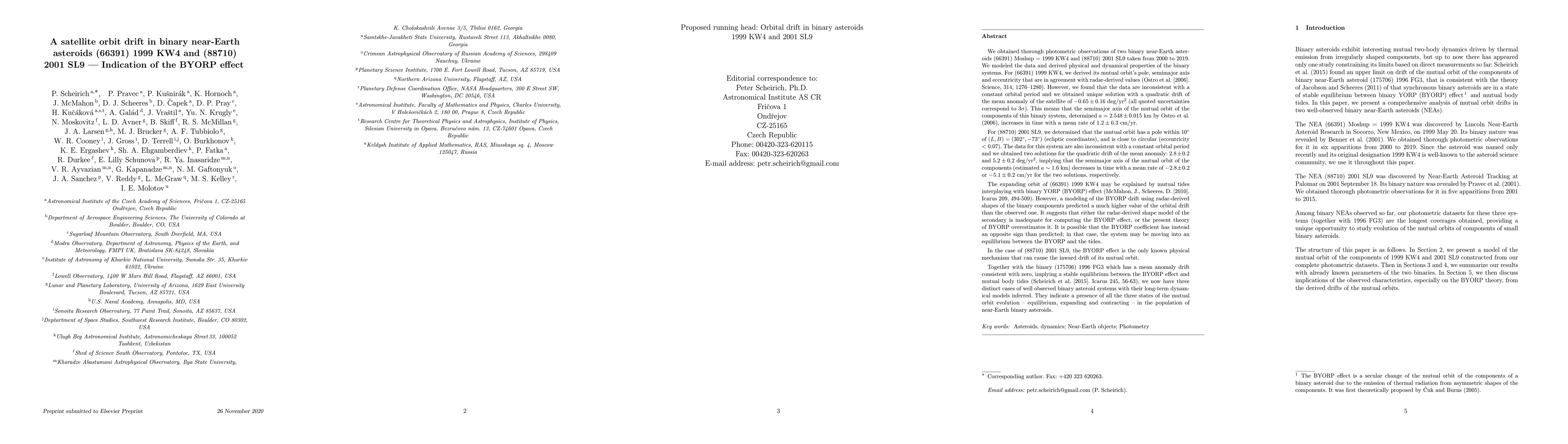 This study investigates the orbital dynamics of two binary near-Earth asteroids, revealing significant orbital drifts likely due to the Binary Yokeed Rotational Spin-up and Precession (BYORP) effect. The orbit of 1999 KW4 expands, while 2001 SL9's orbit contracts, challenging current BYORP models.