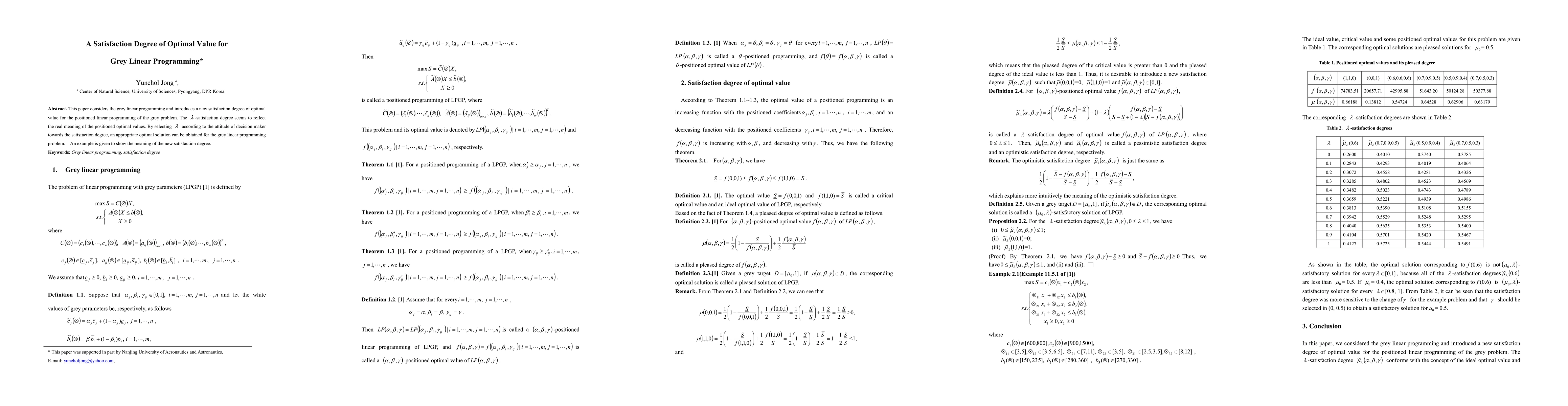 This paper considers the grey linear programming and introduces a new satisfaction degree of optimal value for the positioned linear programming of the grey problem. The {\lambda}-satisfaction degree seems to reflect the real meaning of the positioned optimal values. By selecting {\lambda} according to the attitude of decision maker towards the satisfaction degree, an appropriate optimal solution can be obtained for the grey linear programming problem. An example is given to show the meaning of the new satisfaction degree.
