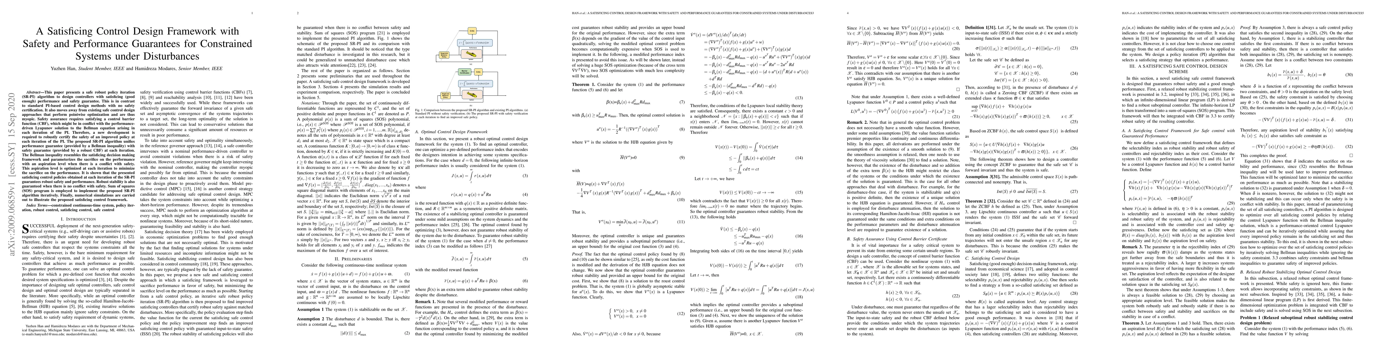 This paper presents a safe robust policy iteration (SR-PI) algorithm to design controllers with satisficing (good enough) performance and safety guarantee. This is in contrast to standard PI-based control design methods with no safety certification. It also moves away from existing safe control design approaches that perform pointwise optimization and are thus myopic. Safety assurance requires satisfying a control barrier function (CBF), which might be in conflict with the performance-driven Lyapunov solution to the Bellman equation arising in each iteration of the PI. Therefore, a new development is required to robustly certify the safety of an improved policy at each iteration of the PI. The proposed SR-PI algorithm unifies performance guarantee (provided by a Bellman inequality) with safety guarantee (provided by a robust CBF) at each iteration. The Bellman inequality resembles the satisficing decision making framework and parameterizes the sacrifice on the performance with an aspiration level when there is a conflict with safety. This aspiration level is optimized at each iteration to minimize the sacrifice on the performance. It is shown that the presented satisficing control policies obtained at each iteration of the SR-PI guarantees robust safety and performance. Robust stability is also guaranteed when there is no conflict with safety. Sum of squares (SOS) program is employed to implement the proposed SR-PI algorithm iteratively. Finally, numerical simulations are carried out to illustrate the proposed satisficing control framework.