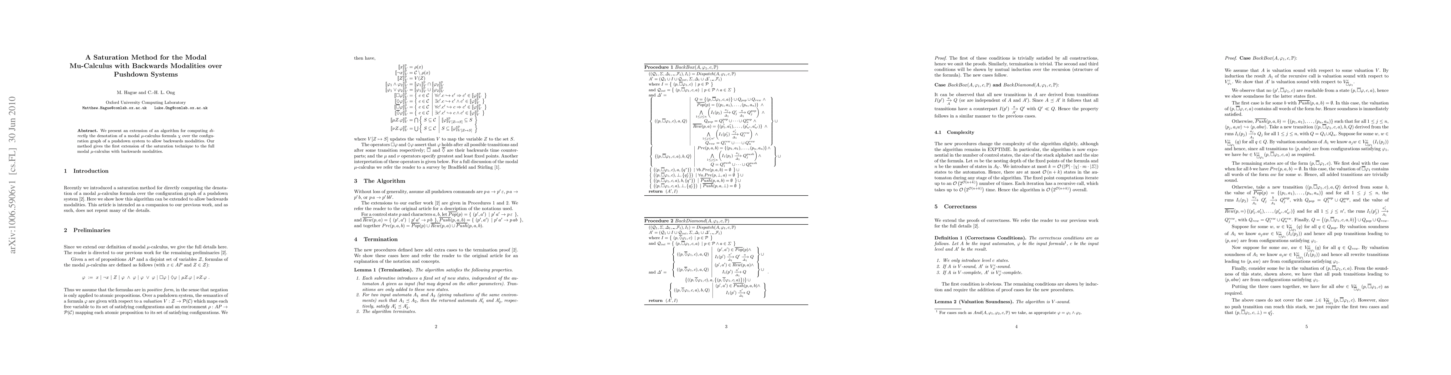 We present an extension of an algorithm for computing directly the denotation of a mu-calculus formula X over the configuration graph of a pushdown system to allow backwards modalities. Our method gives the first extension of the saturation technique to the full mu-calculus with backwards modalities.