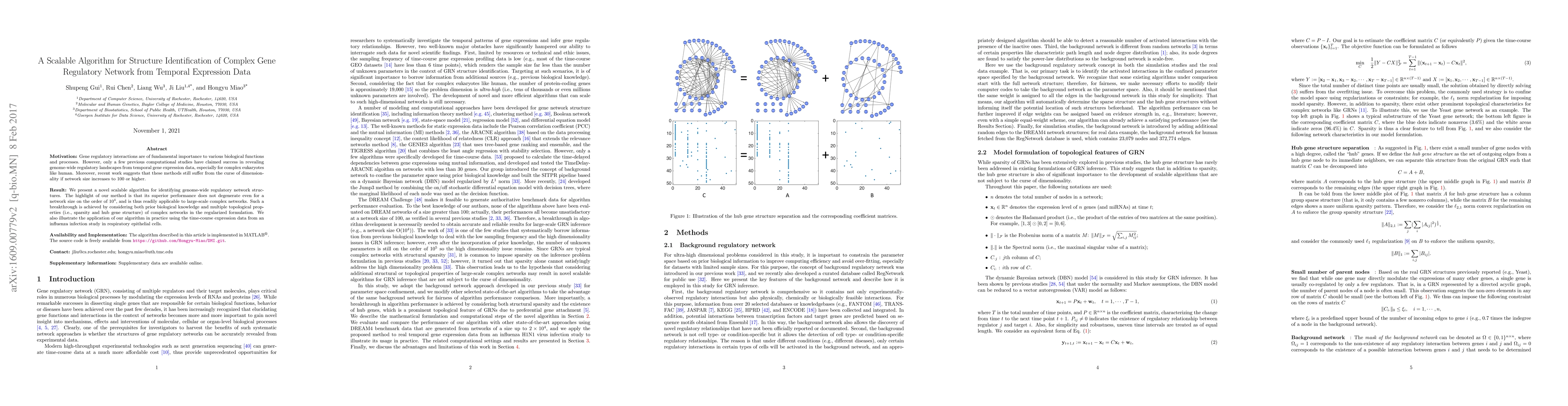 This paper introduces a scalable algorithm for identifying genome-wide gene regulatory networks from temporal expression data, demonstrating its effectiveness even for large networks (up to $10^4$ genes). The algorithm leverages prior biological knowledge and network topology properties to maintain performance.