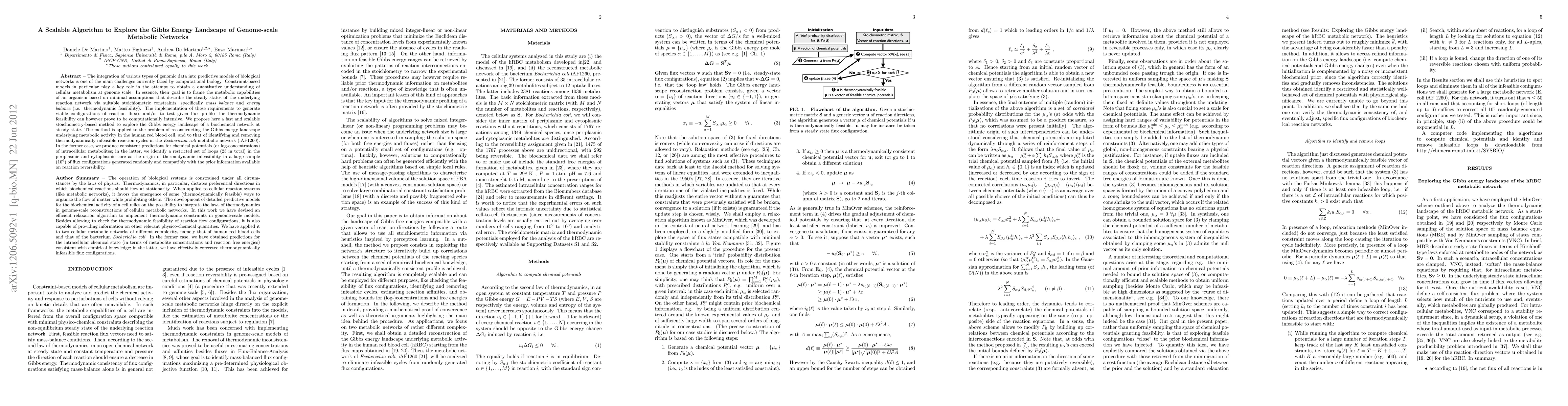 This paper presents a scalable algorithm for exploring the Gibbs energy landscape of genome-scale metabolic networks, focusing on constraint-based models that describe cellular metabolism. The proposed method efficiently identifies thermodynamically feasible reaction flux profiles and is applied to human red blood cells and Escherichia coli, revealing infeasible reaction cycles and predicting metabolite concentrations.
